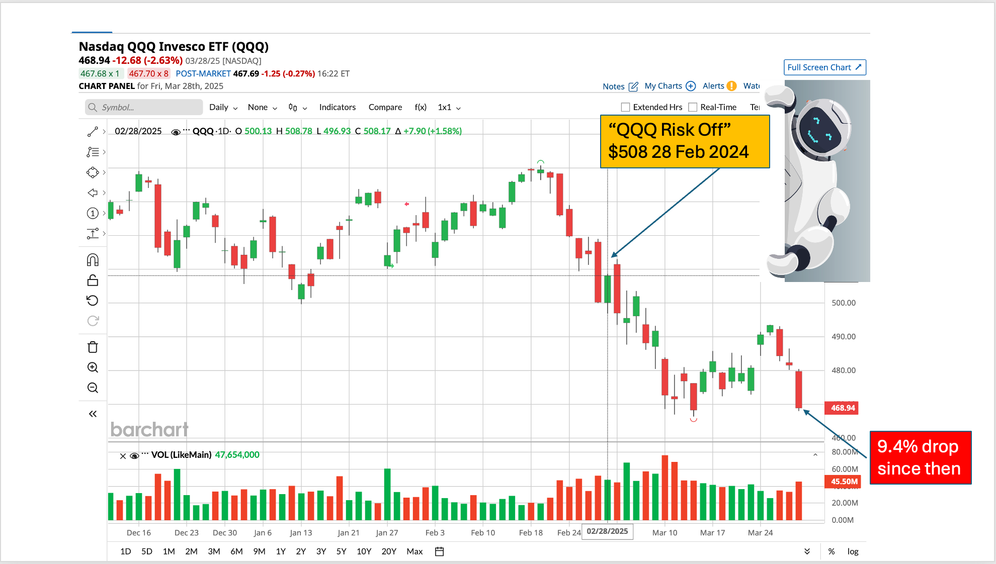 We also offer SignalFlow for QQQ. Here’s how it held up in the recent dump.