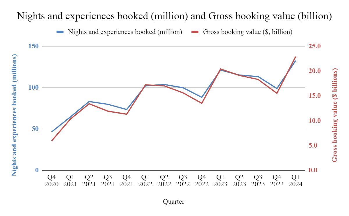 Non-GAAP measures relevant to the online travel platform business, such as nights and experiences booked and Gross Booking Value, continued their upward trend.