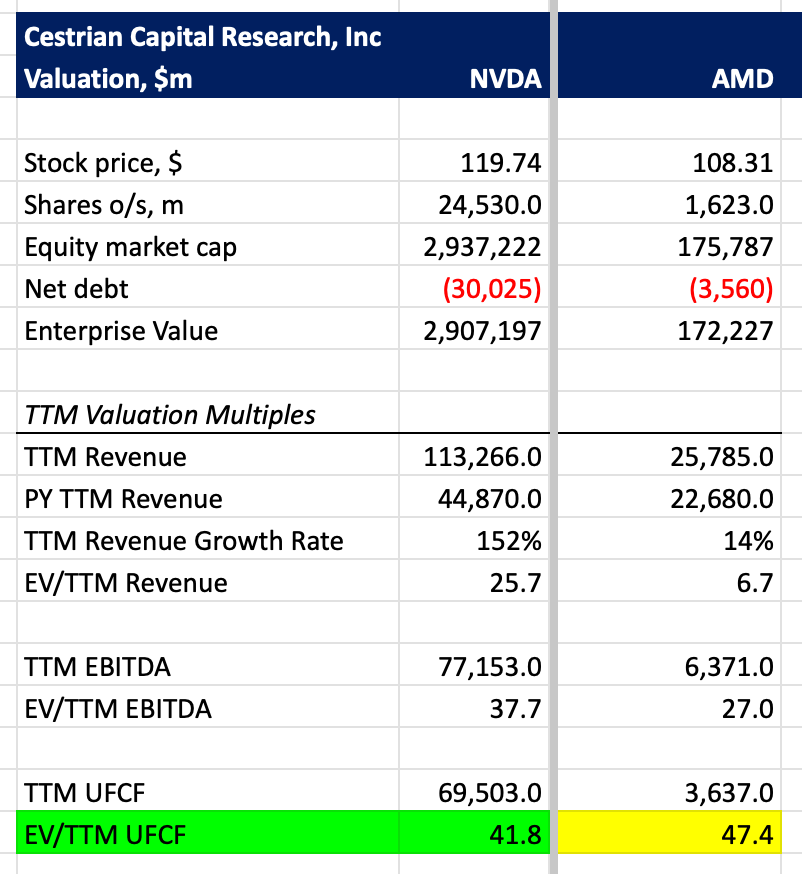 Two, NVDA is growing at 150% on a TTM basis and AMD is not.