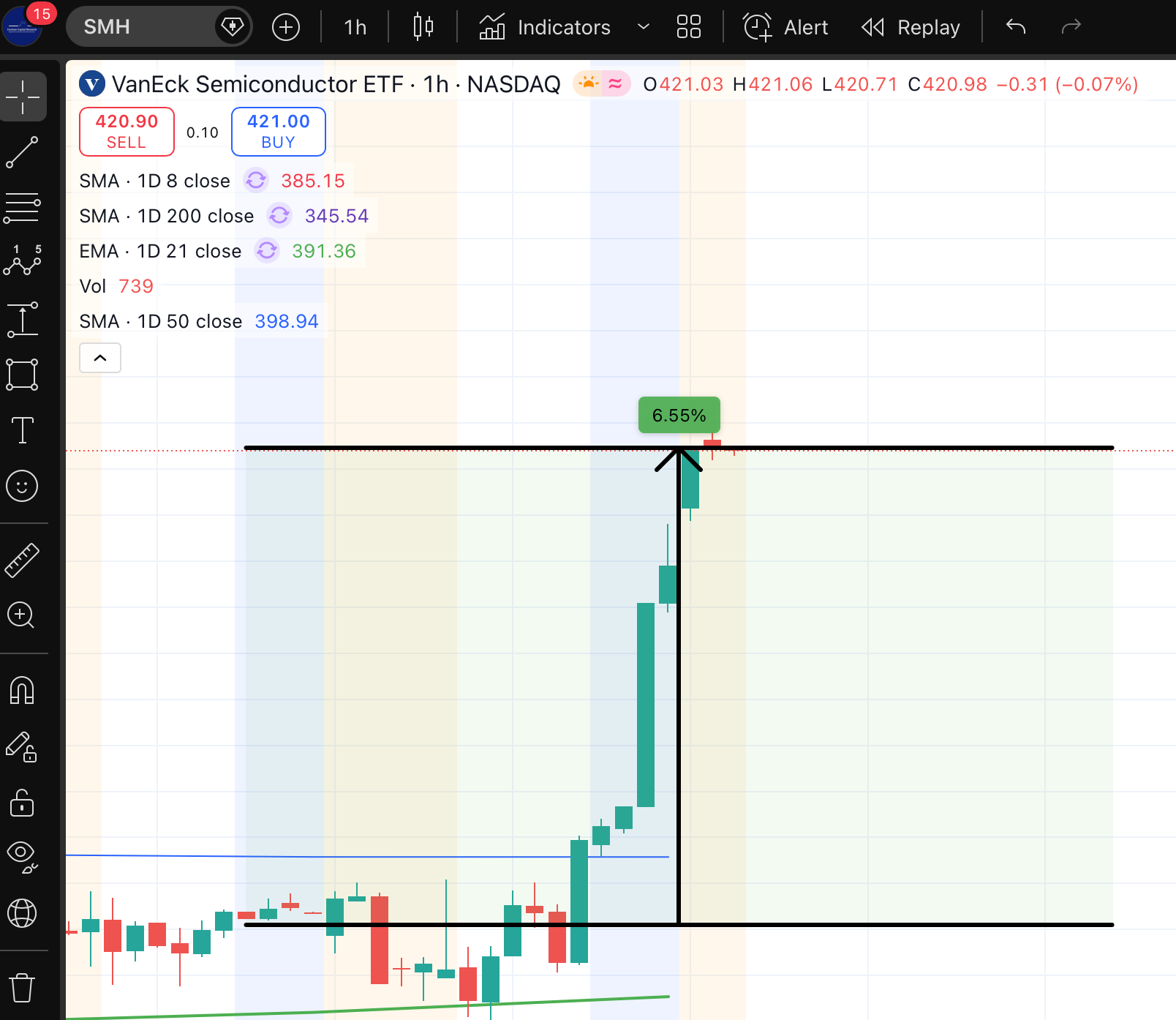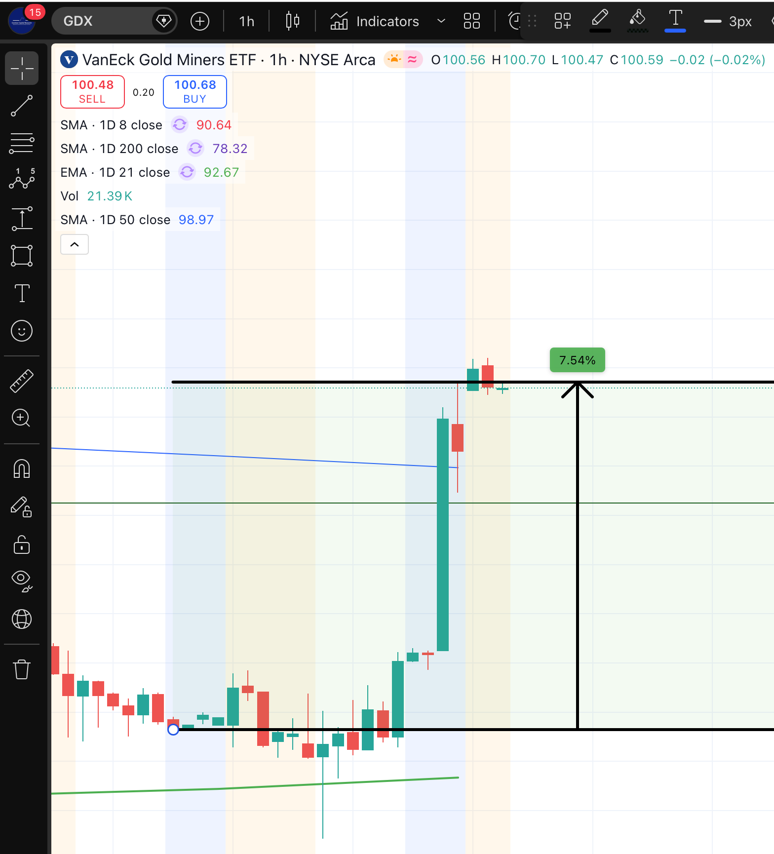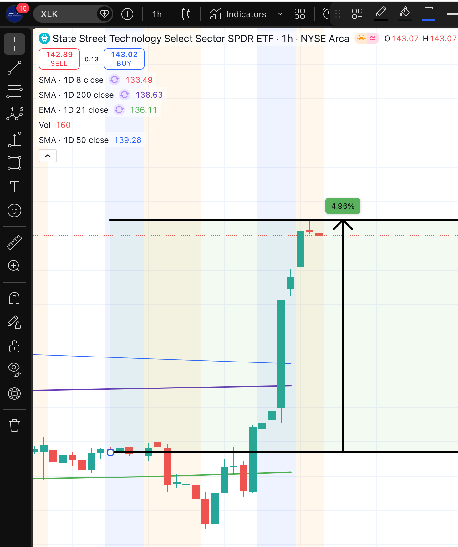 Amongst the many plaudits we can and should give to the SignalFlow AI family is this: on Monday at the close - yes Monday, not Tuesday, Monday - our SignalFlow AI Growth algo flipped from risk-off (it had suggested its members sit in cash for a little while) to fully, unbridled, high-octane, risk on. Yes, on Monday at the close when your average stock picker was Claude-ing “what is the blast radius of a tactical nuclear weapon? and which state should I move to? - make no mistakes”. SignalFlow AI Growth proposed moving to long $SMH (semiconductor), long $XLK (Big Tech, eat that haters!) and long $GDX (gold miners). Well, reader, here’s how that has gone so far, just a day and a half later.