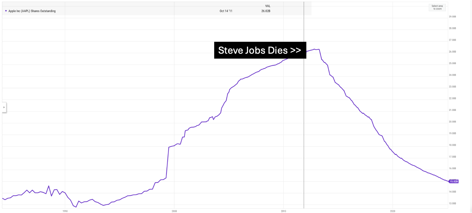 You see, Apple’s notional products are phones and suchlike but in reality its primary product is its stock. The excess profits wrought by its labor arbitrage practice are used to buy its own stock, which in turn helps to support the stock price. In answer to the question “why doesn’t Apple spend more on R&D or innovate more or acquire more startups”, the answer is “because its CEO doesn’t want to”. The Cook era has been the stock-as-the-product era.
