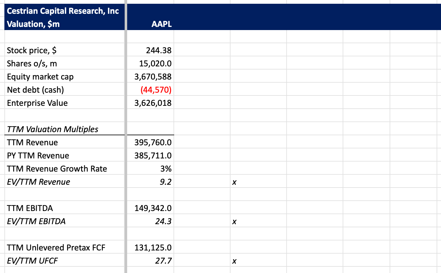 100 years ago when I was a pure fundamentalist, my view on Apple the company was, meh, without Steve Jobs they are nothing special. My view on the stock valuation was, that’s expensive considering it’s margin-maxed and doesn’t grow much. At this time I also shunned Apple computers as being ‘for creatives’ as opposed to being for people who did, you know, real work.