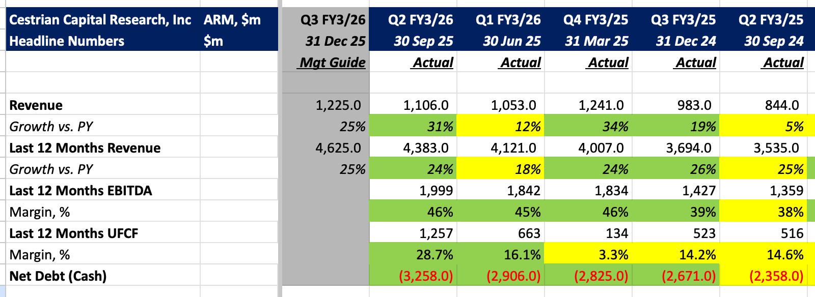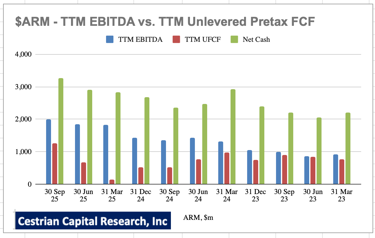 I noted a couple quarters back that something was amiss with ARM cashflows - you can see that with the dip to 3% unlevered pretax FCF margins in the March 2025 quarter. That has more than corrected now.