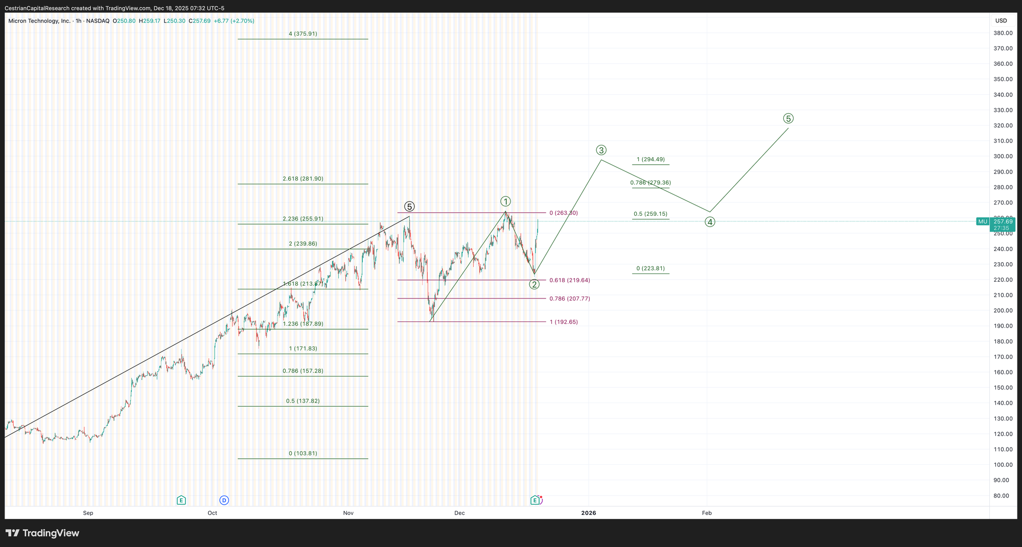 The short-term chart is what matters here. If Micron can close at a new all-time high today, tomorrow or Monday (it’s Q4 options expiry tomorrow so craziness will haunt Wall Street all day) then this thing can rocket higher. If the prior ATH is hard-rejected then the AI narrative is probably done for awhile.