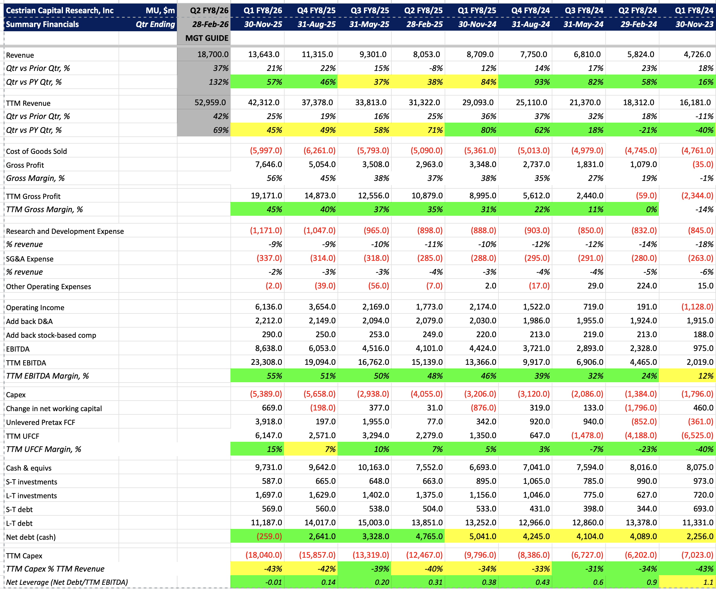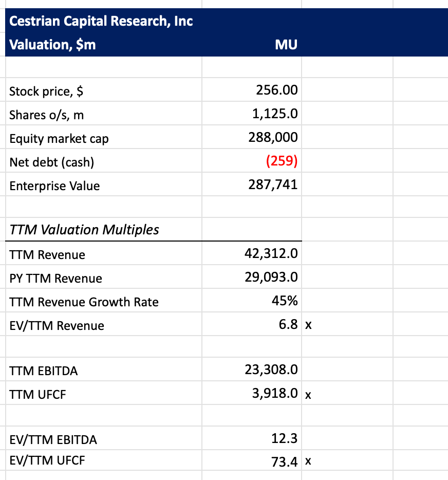 - You can ignore EBITDA at Micron because it builds its own fabrication plants, like Intel, so its capex bill is big.
