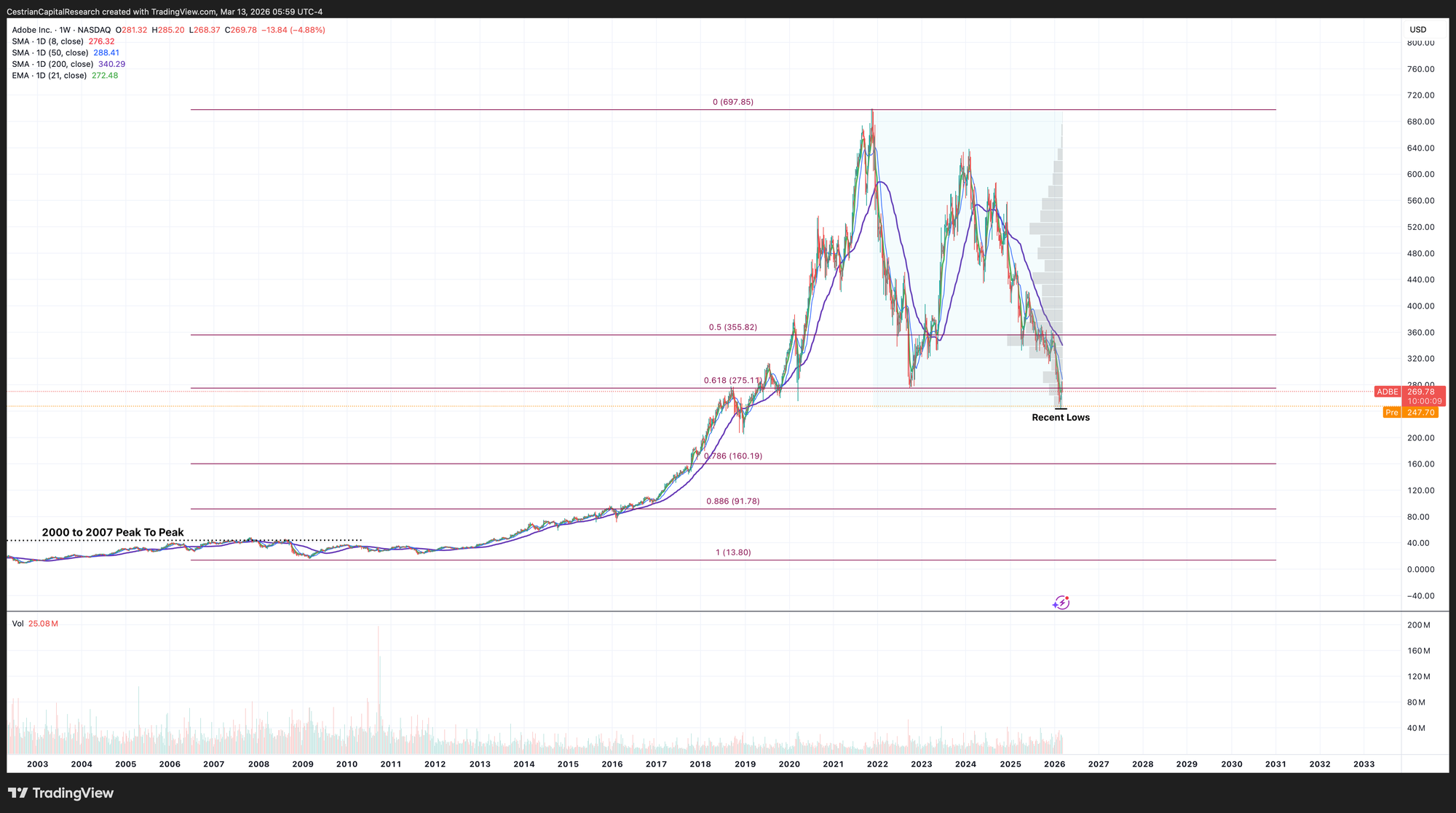 The stock’s decline has been remarkable; it has shed more than 60% of all the value created since the GFC lows of 2009 to the ATHs of 2021.