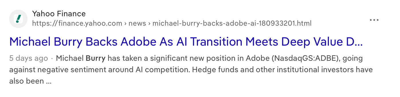 - Pricing power is tilting upward. Claude believes that Adobe has been threading through price increases and tiered AI credit models. Firefly credits are now a monetization layer on top of subscriptions — effectively allowing Adobe to charge more for heavier AI usage - if true that will be an embedded source of revenue growth because AI usage is only going in one direction if you ask me.