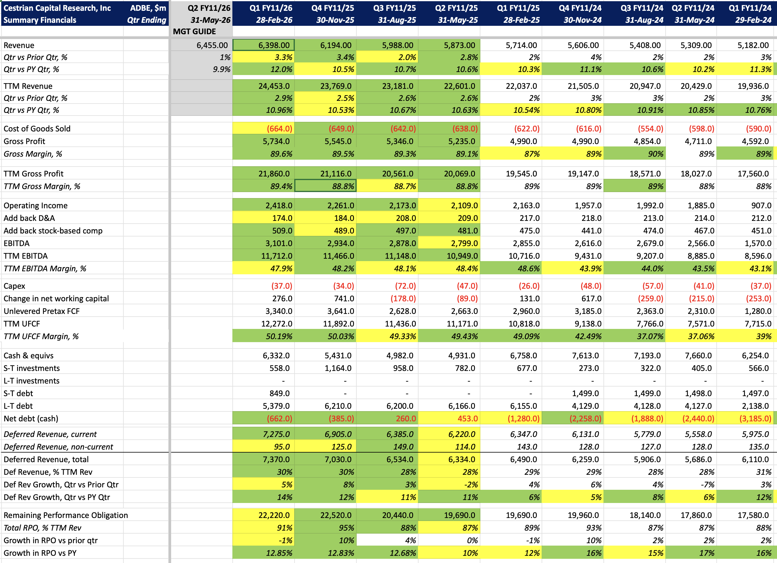 - Cashflow margins ticked up to 50.2% on a TTM UFCF basis.