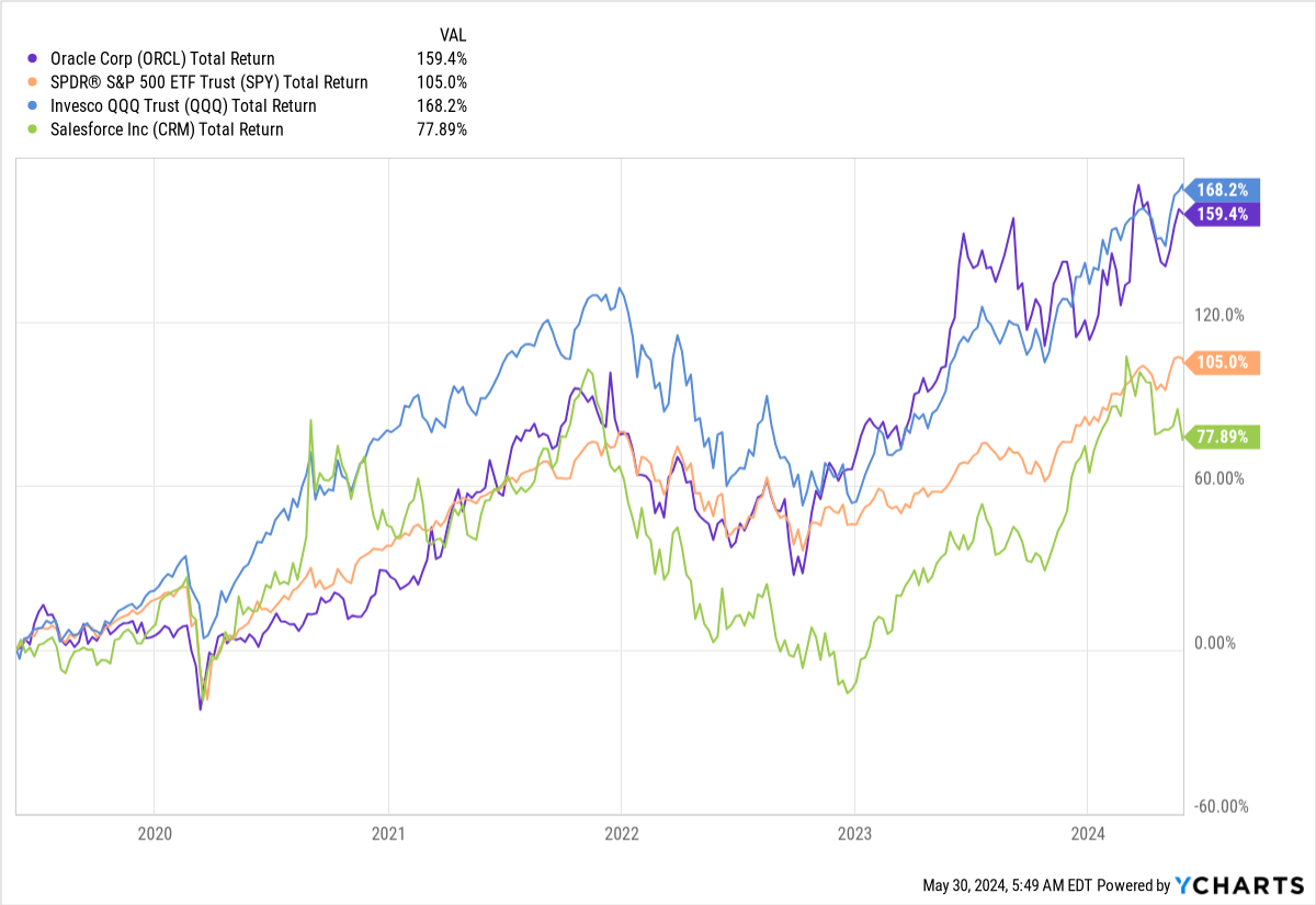 Sporadic acquisitions with declining organic growth at CRM though has meant the stock has underperformed the S&P these last five years - this is primarily a result of a colossal selloff in 2022 (overdone in my view, but who am I to say?).