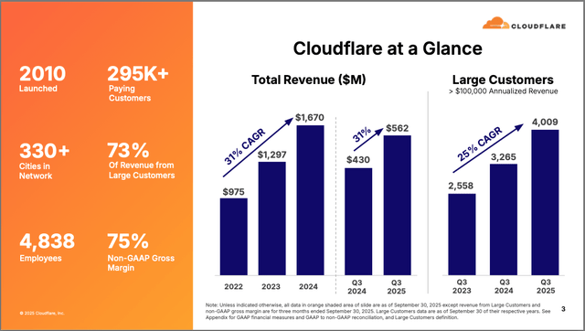 Another very strong print for CloudFlare ($NET) marked by a second consecutive quarter of revenue acceleration and underpinned by disciplined expense management, a continued focus on growing large enterprise customers and rapid expansion of their network capacity. With the strongest growth in RPO since 2022 bringing the prospect of another revenue beat in Q4, added to strong demand for its network-embedded services, and a pace of customer acquisition that added 30,000 paying customer this quarter alone, there's a distinct sense that CloudFlare is successfully 'feeding the machine' of sustained future growth.