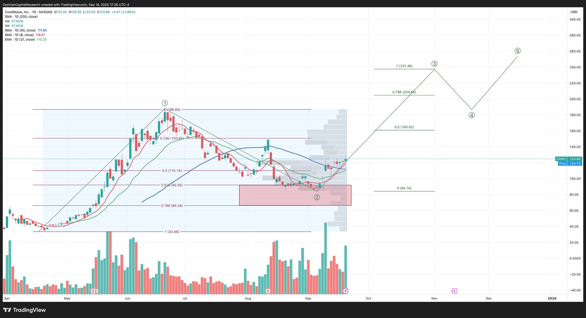 Despite, or rather because of, all the nonsense above, CRWV stock looks in a bullish setup to me. You can open a full page version of this chart, here.