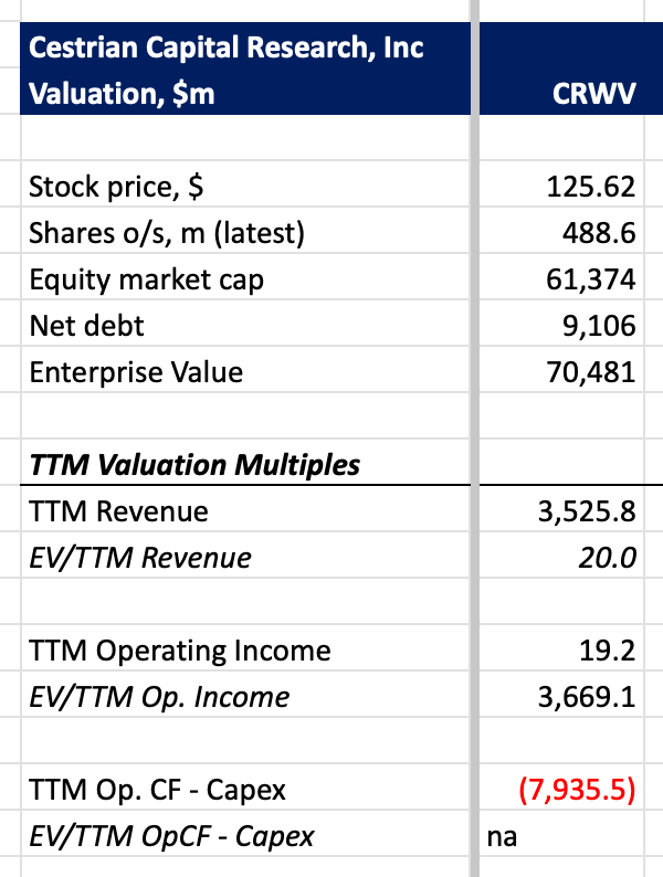 CRWV stock is yours for a mere 20x TTM revenue or 3,700x TTM operating income.