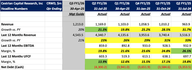 A solid set of Q2 results from CrowdStrike ($CRWD), marking acceleration across revenue growth, net new annual recurring revenue (ARR) and remaining performance obligations (RPO), as well as improving cost metrics and unlevered free cashflow margins (UFCM), all giving a sense that the 'Blue Screen of Death' (BSOD) outage seen a little over a year ago is firmly in the past, with CrowdStrike rehabilitated and well and truly out of the dog house.