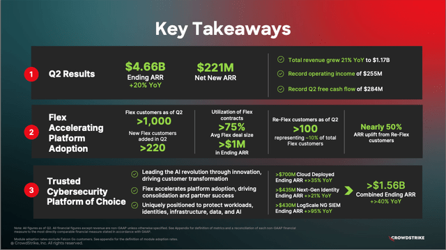 - ARR grew 20% yoy and set a Q2 record; new platform ARR (Cloud Security, Next Gen Identity and Security Information and Event Management - SIEM) grew over 40%, reaching more than $1.56B.