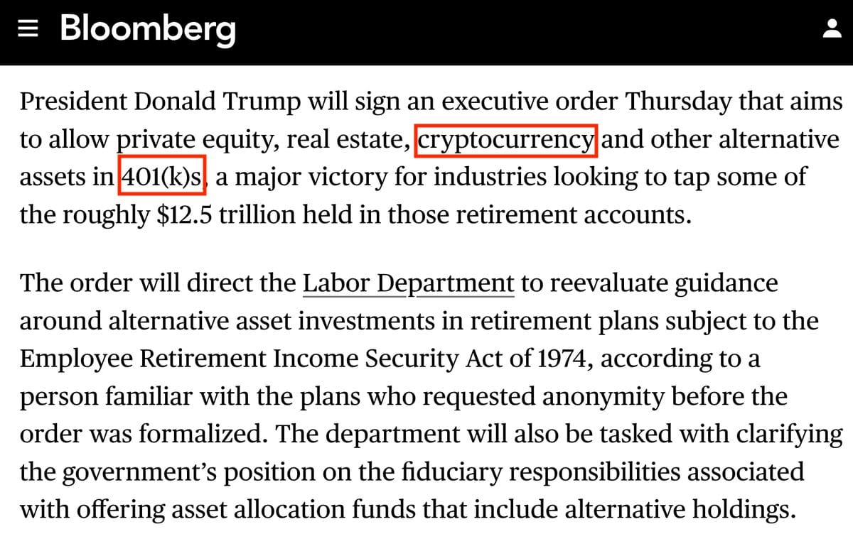Right around now the Administration is ushering in a new era in investment regulation. Specifically, it is laying the groundwork for 401(k) plans to be able to invest in a wider range of assets than has hitherto been the case. If that sounds like a nothingburger, I assure you it is not. The driver here is the asset management industry, which has long eyed 401(k) plans as a potential source of funds for a long list of currently verboten assets, from private credit to real estate to crypto.