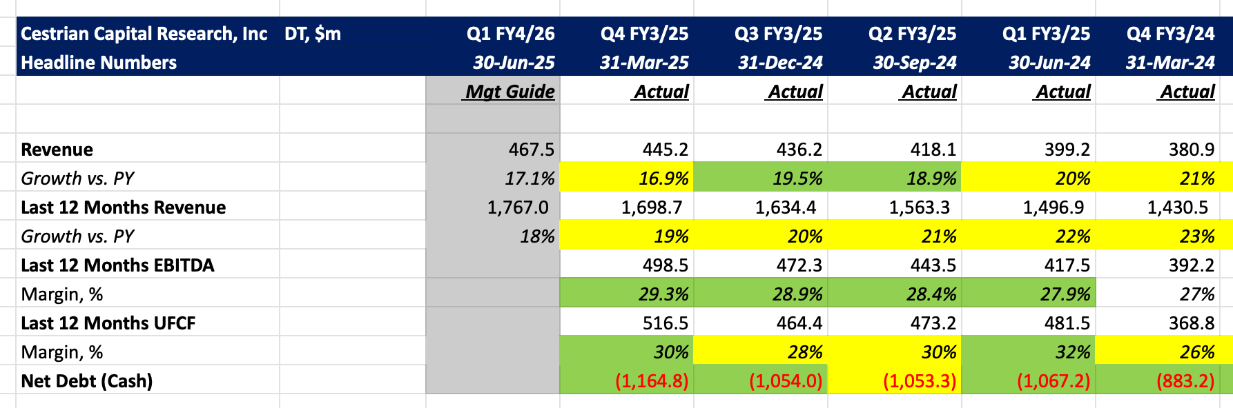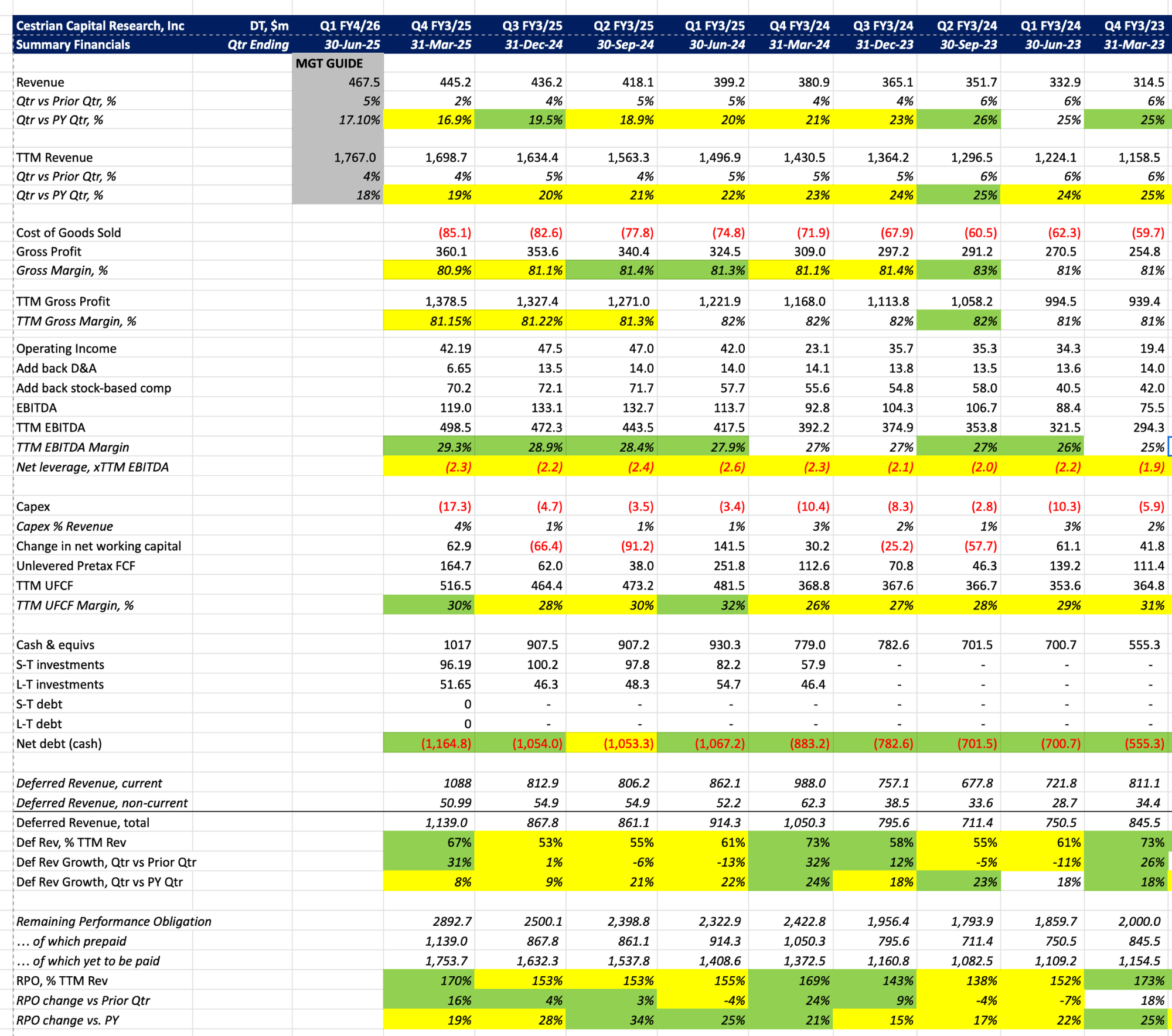 This is what a maturing software business looks like. Margins climbing, cash pile rising, revenue growth slowing.