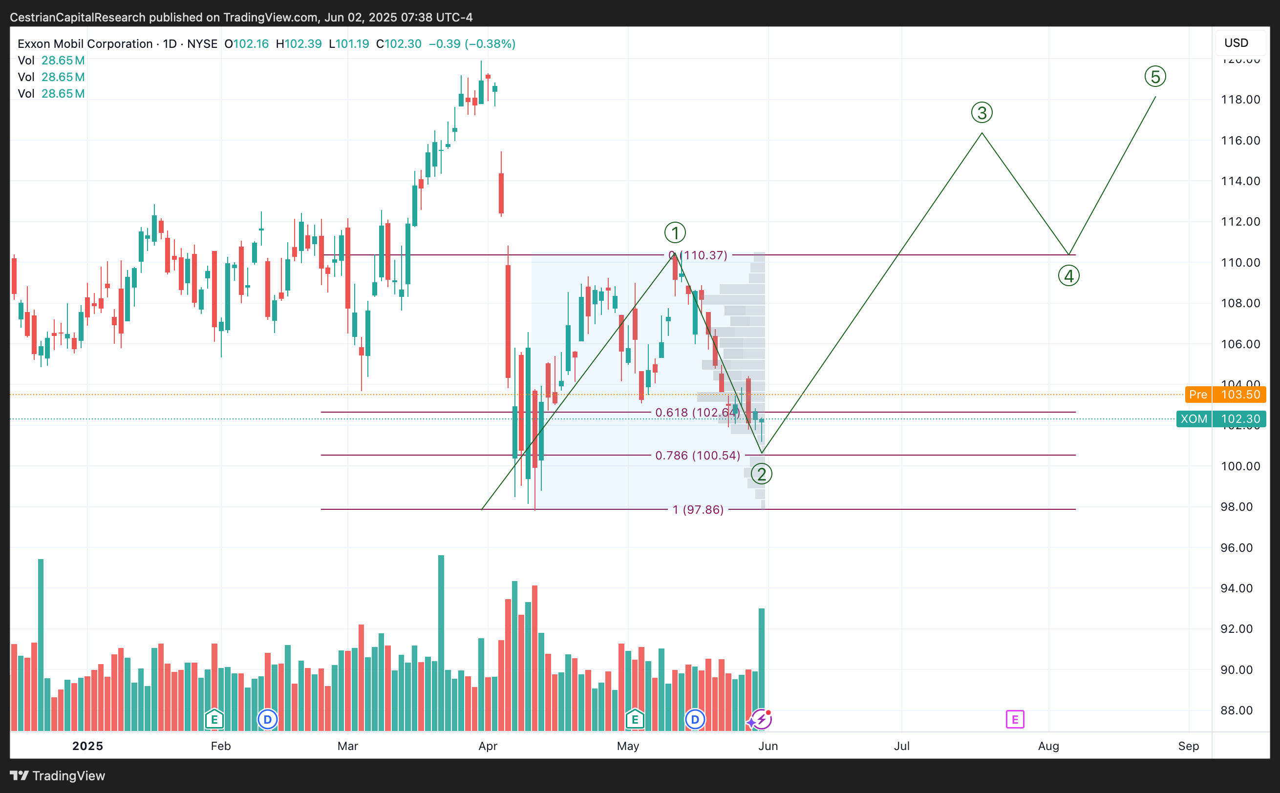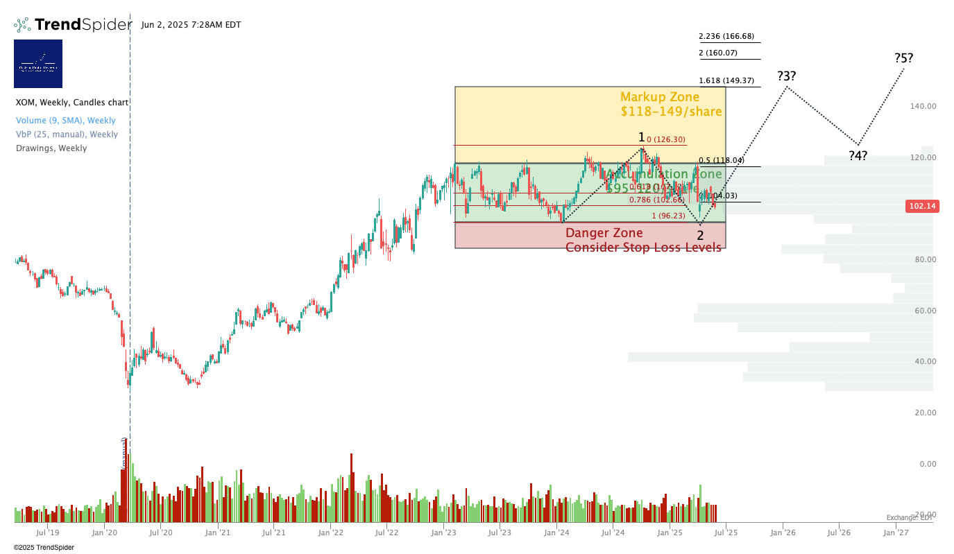 We rate XOM at Accumulate per the longer-term chart above.