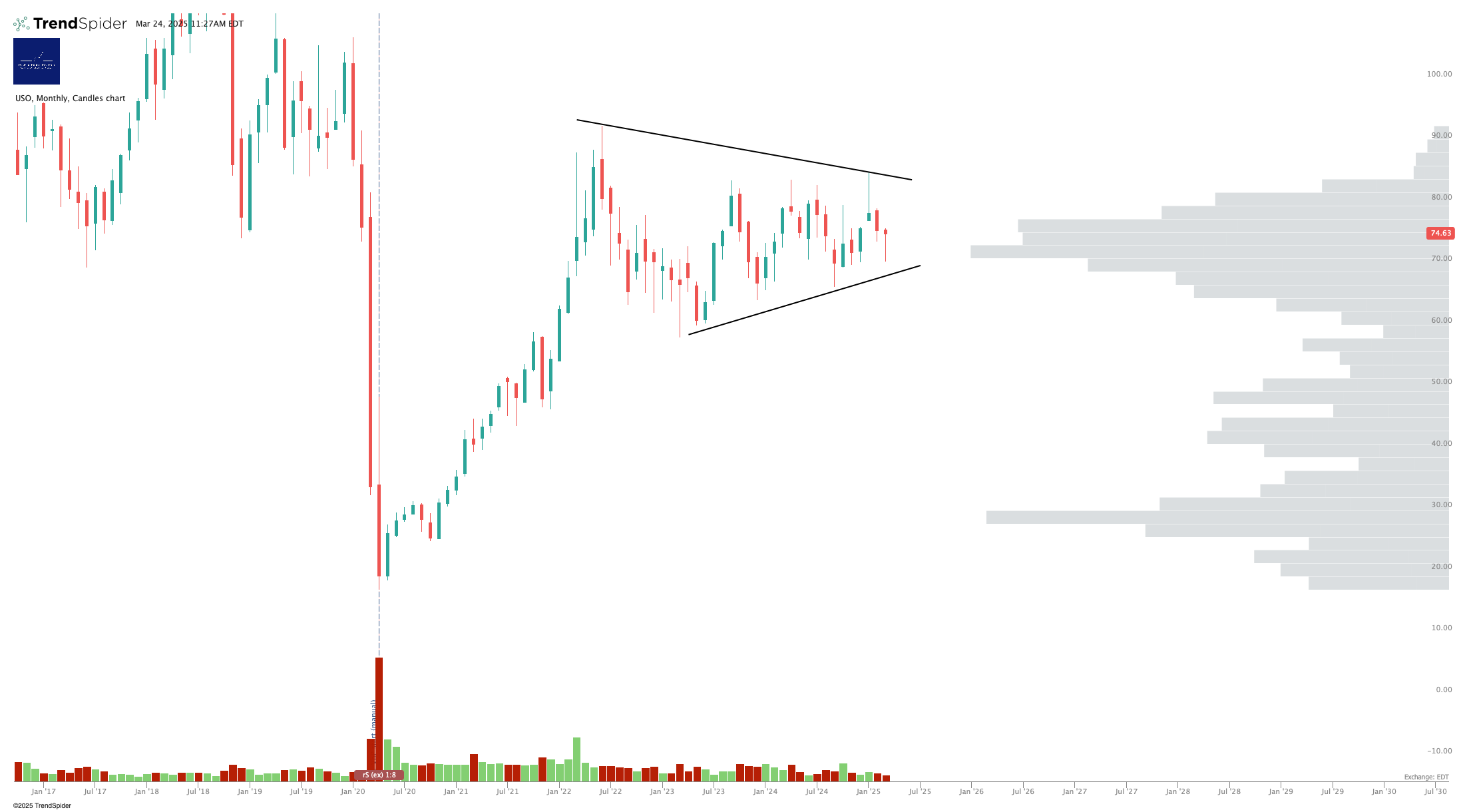 Anything can happen of course, but it looks like USO has a chance of exiting that range compression to the upside.