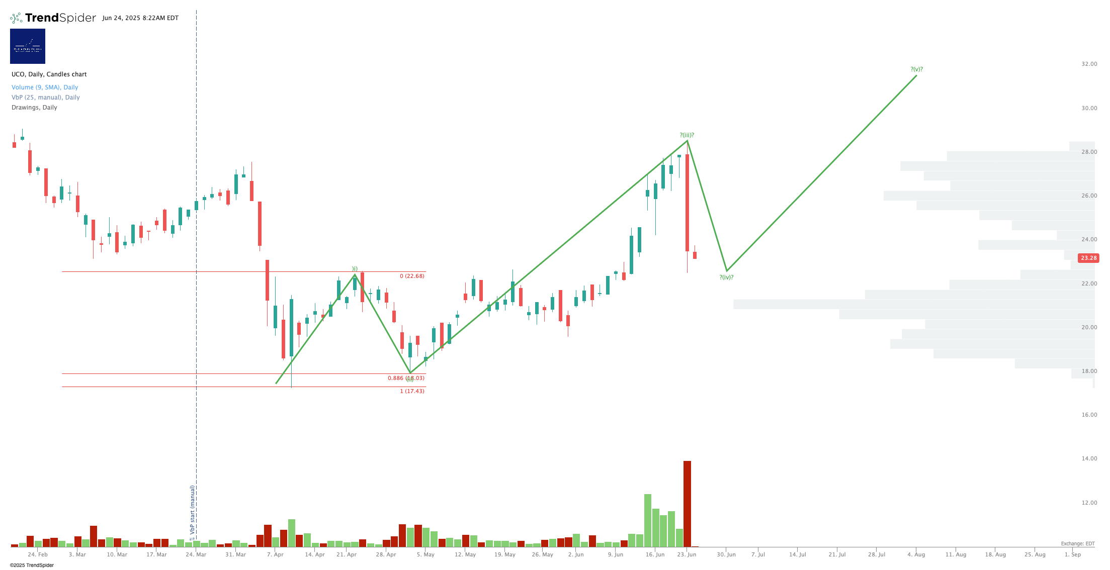 Tweakers are not to be trusted, since they are always hogging money for their own selfish uses; this is true of levered ETF charts too. But … UCO is saying another leg higher in oil is on the cards after this big sell. So let’s see if it is just trying to take a bag of money off of you for no reason, or whether it is for once leading the way over its less ambitious unlevered brethren.