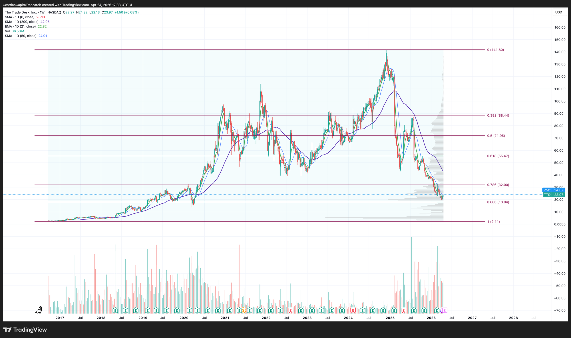 $TTD, for instance, had already given up over 80% of all the gains it had achieved since IPO.
