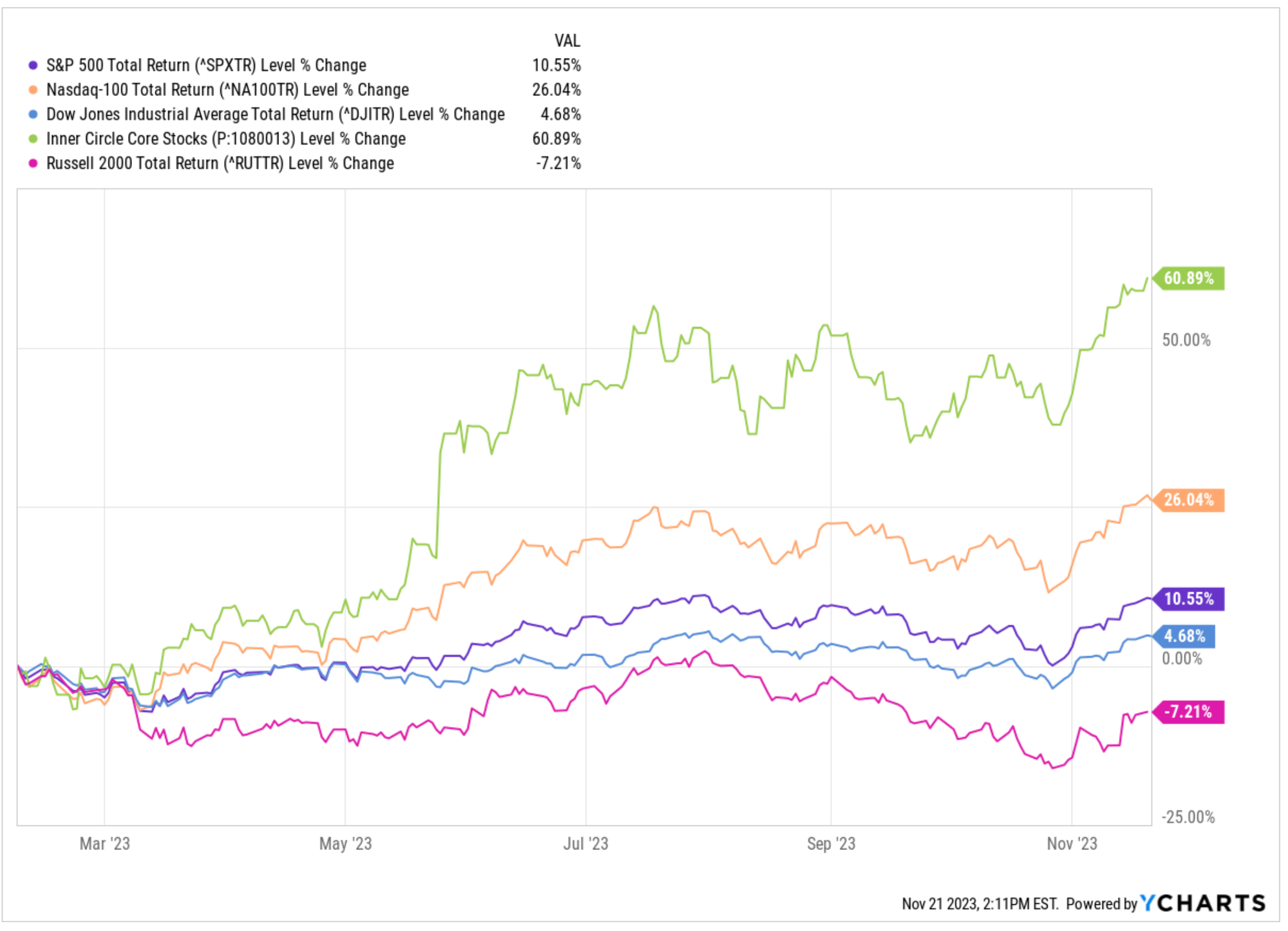 Join us at 5pm Eastern TODAY for our latest live, open-mic Inner Circle webinar. Today our regular Tuesday slot coincides with NVDA's earnings print. Nvidia is the single most successful stock pick in the Inner Circle service - it's in the Core Stocks portfolio which began life on 7 February this year. Here's how that portfolio has performed to date: