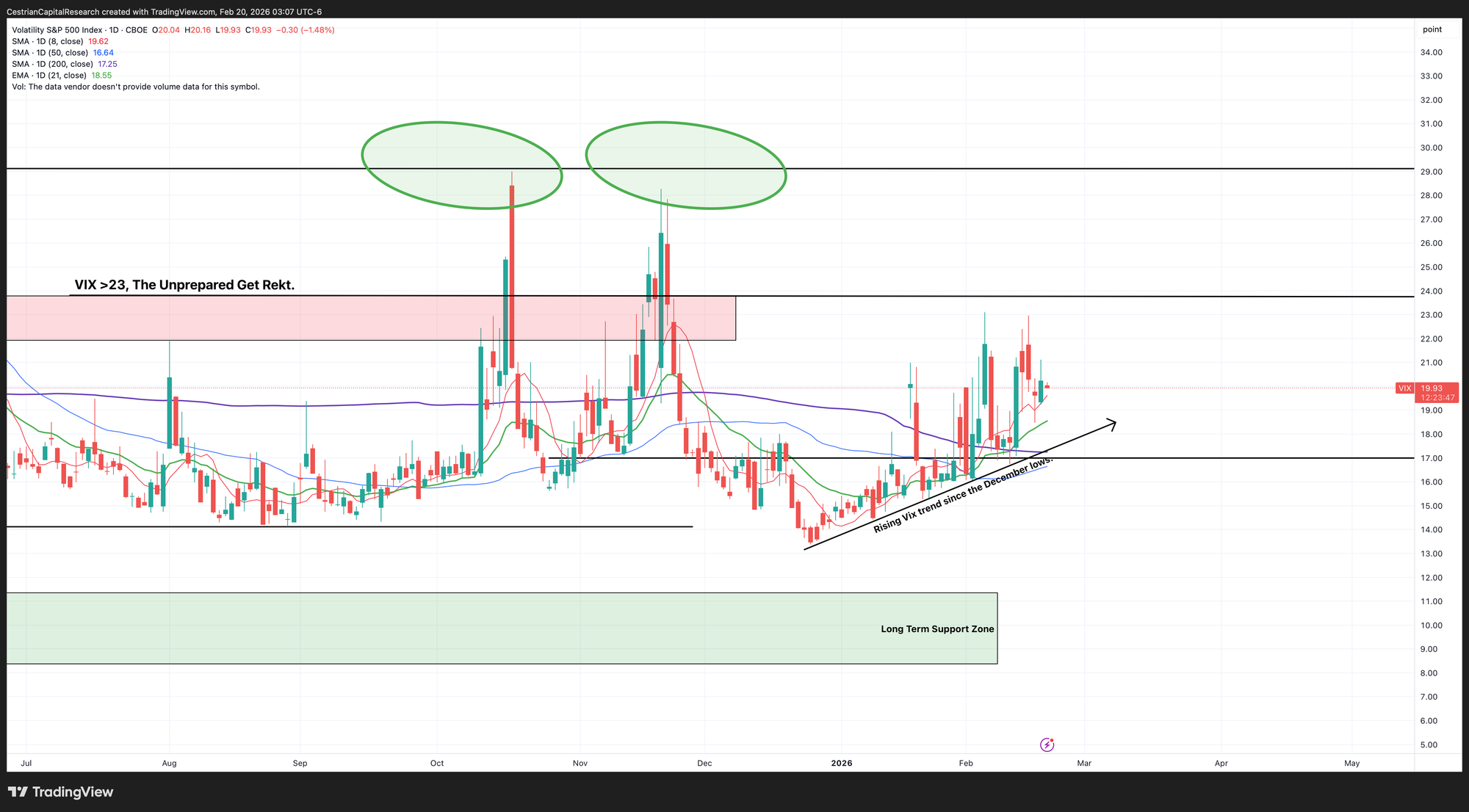 In addition, the Vix (remember: a measure of demand for S&P500 index puts with >30 days to expiry) has trended consistently up since its December lows. Full page version, here.