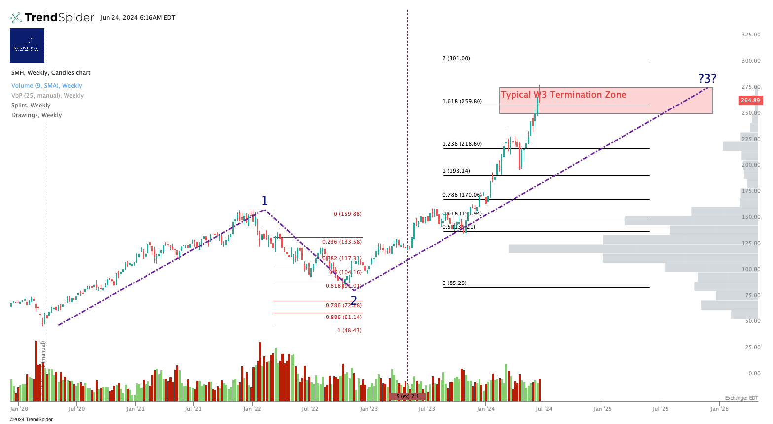 Chief candidate as a source of funds heading into Q3 has to be semiconductor I think. Here’s $SMH (which is heavily weighted towards $NVDA - 20% of holdings as of 21 June 2024).