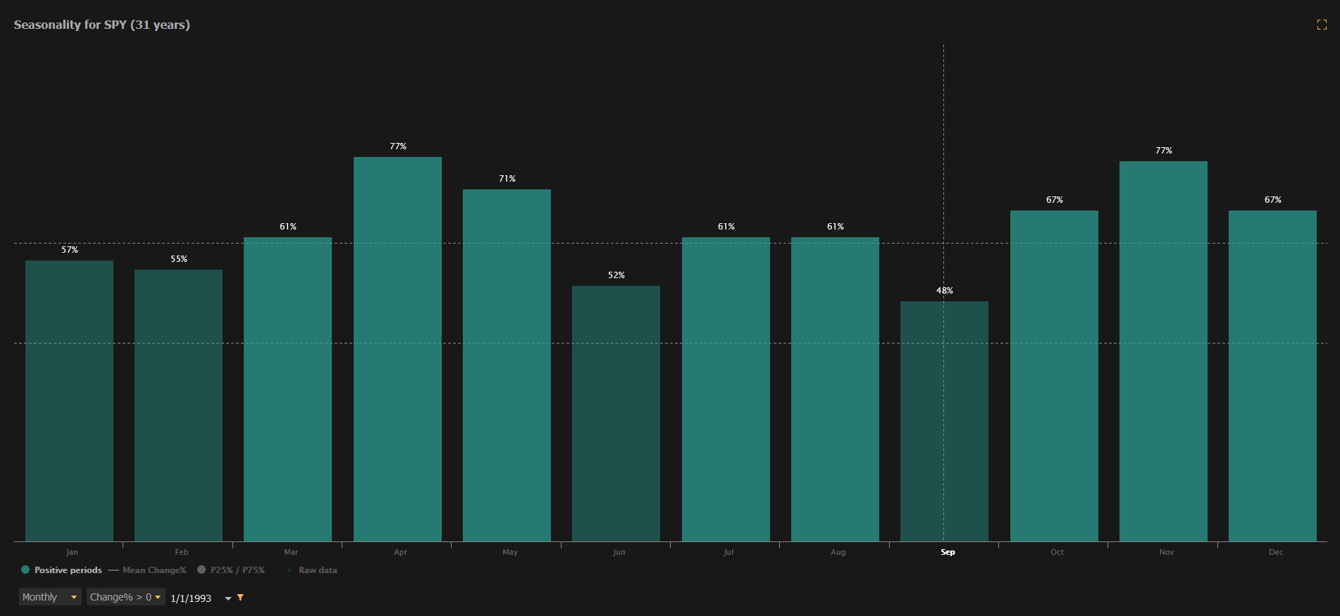 For now then we sit back. It seems to us that a reversal to the upside is due in equities. Looking at the S&P alone, over the last 30 years or so, September is more often a down month than an up month, and Q4 has historically been the most bullish quarter over that period.