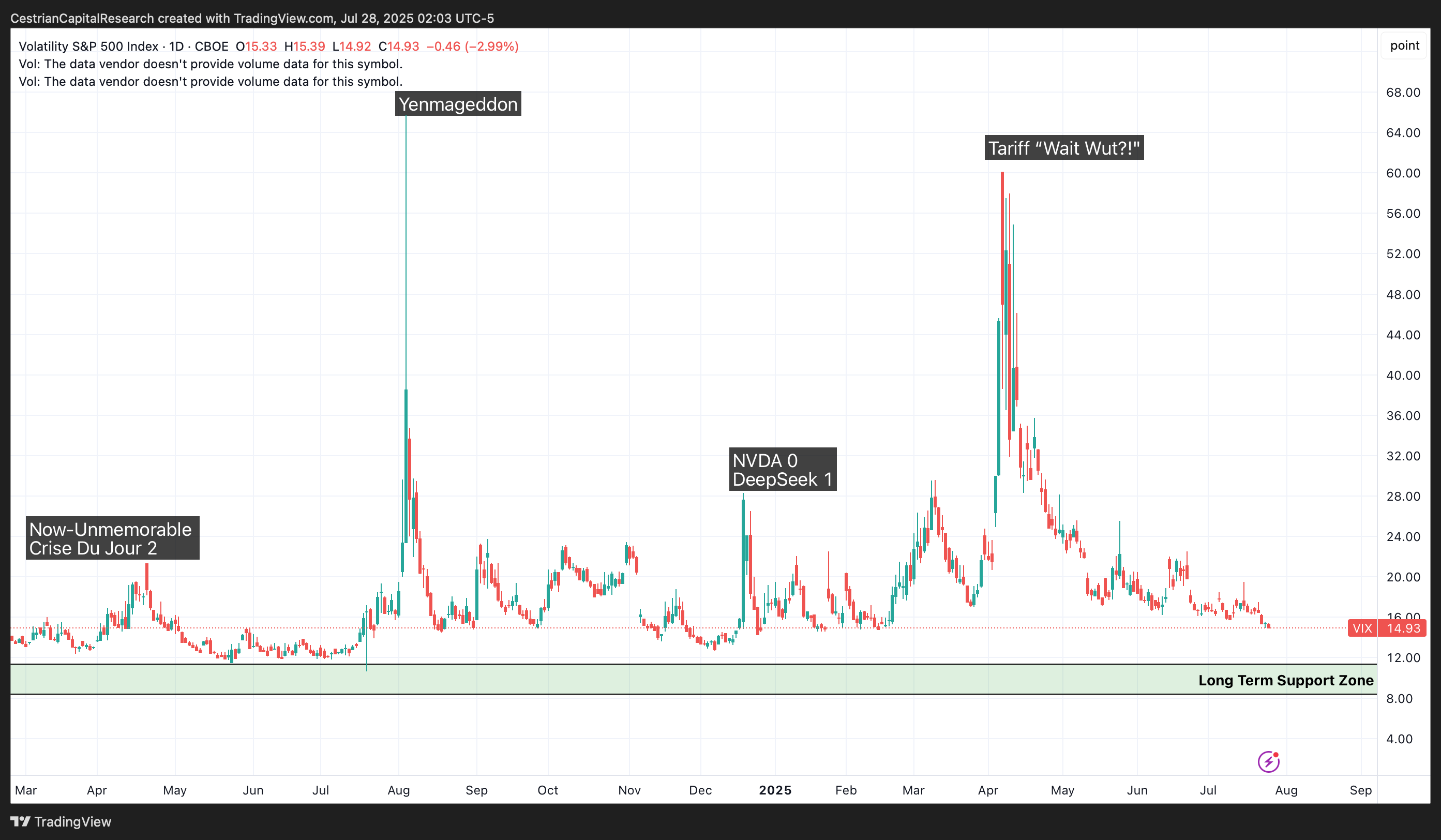 The Vix will spike, it always does, but as you can see, in between spikes there are often long periods of calm when the “Nothing Ever Happens” bros are running the narrative. As now.