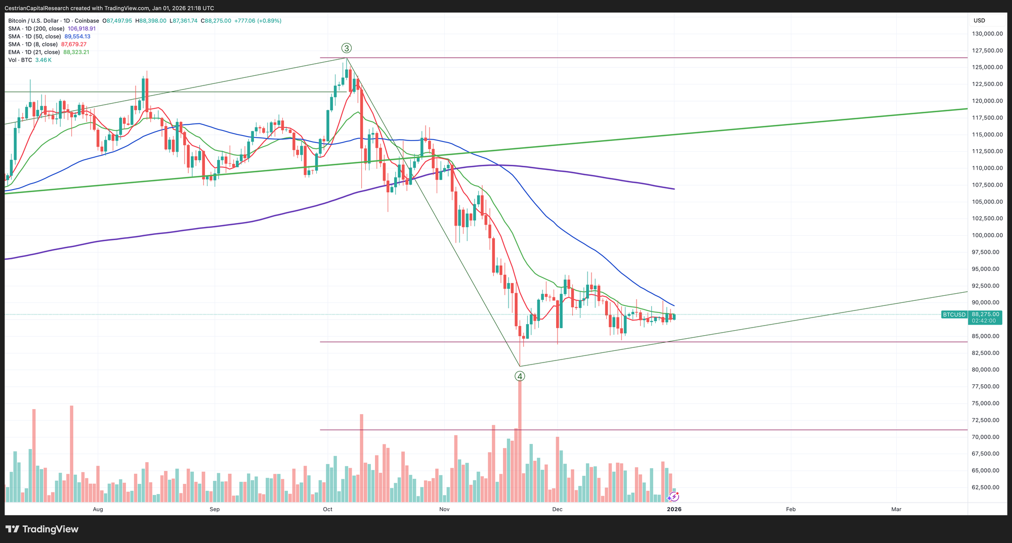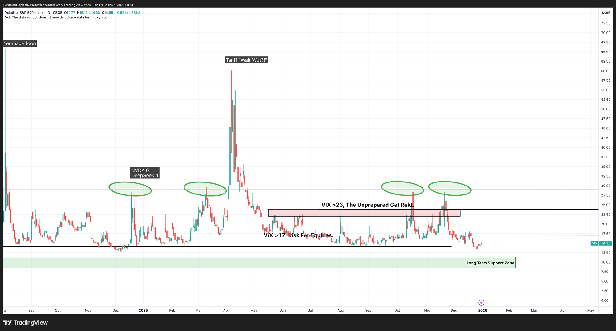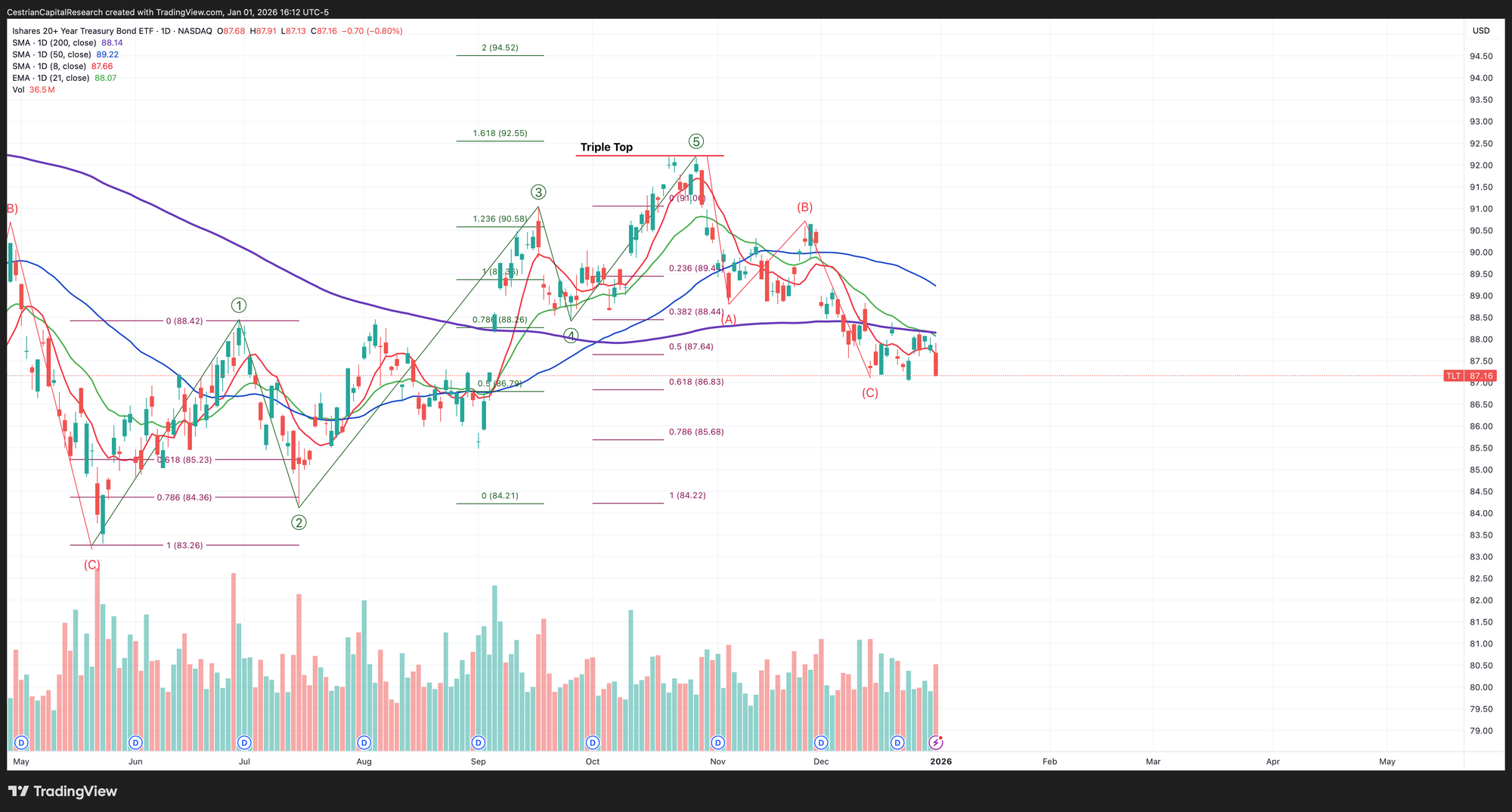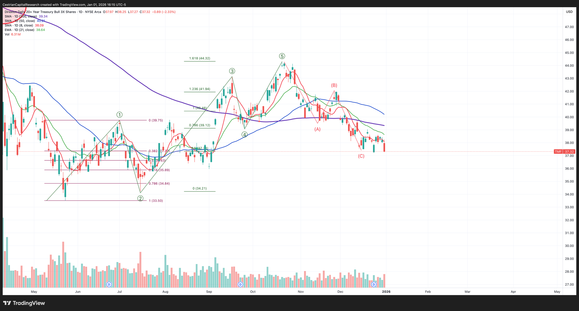 Closed the last day of 2025 below the 21-day EMA and below the 50-day SMA which isn’t wonderful. Again let’s see what happens with liquidity entering the system tomorrow.