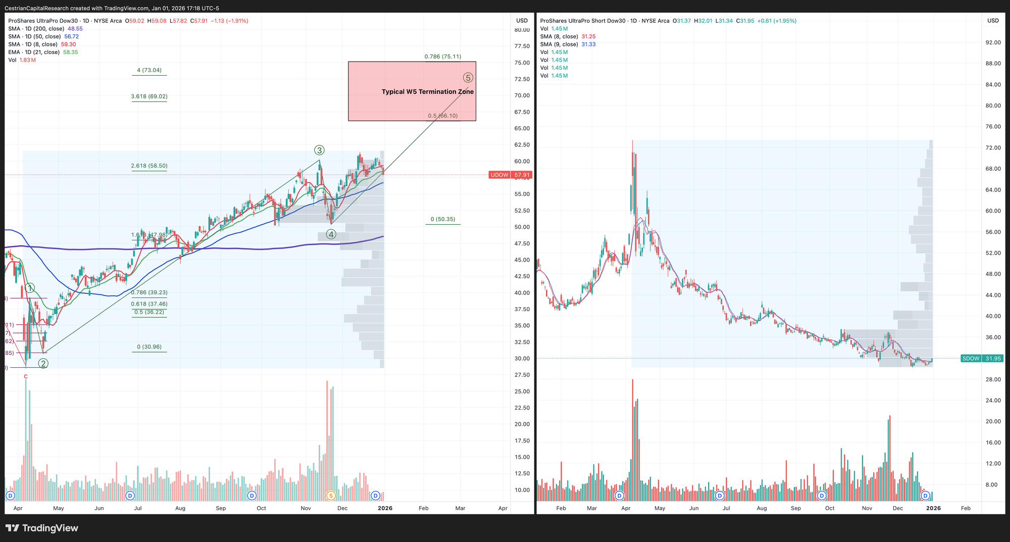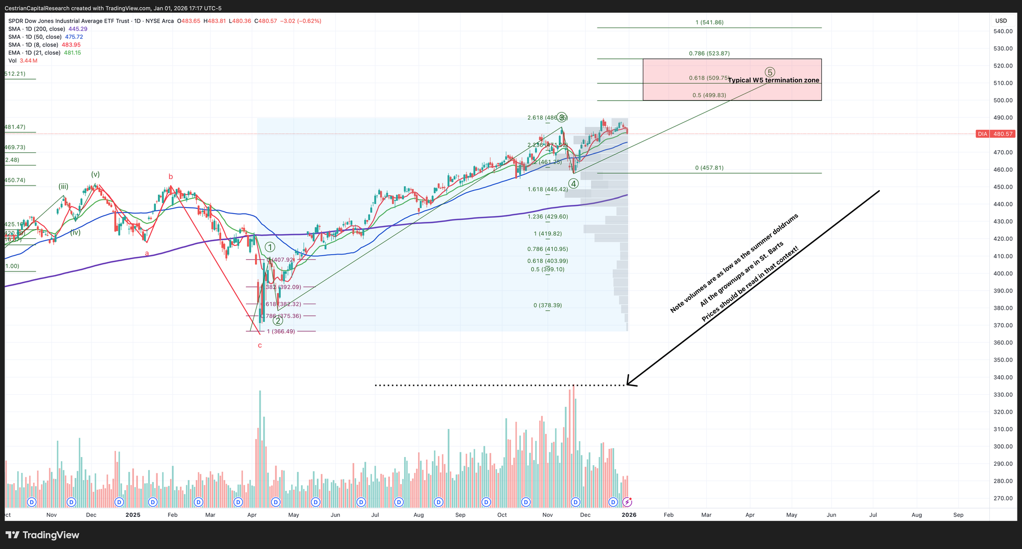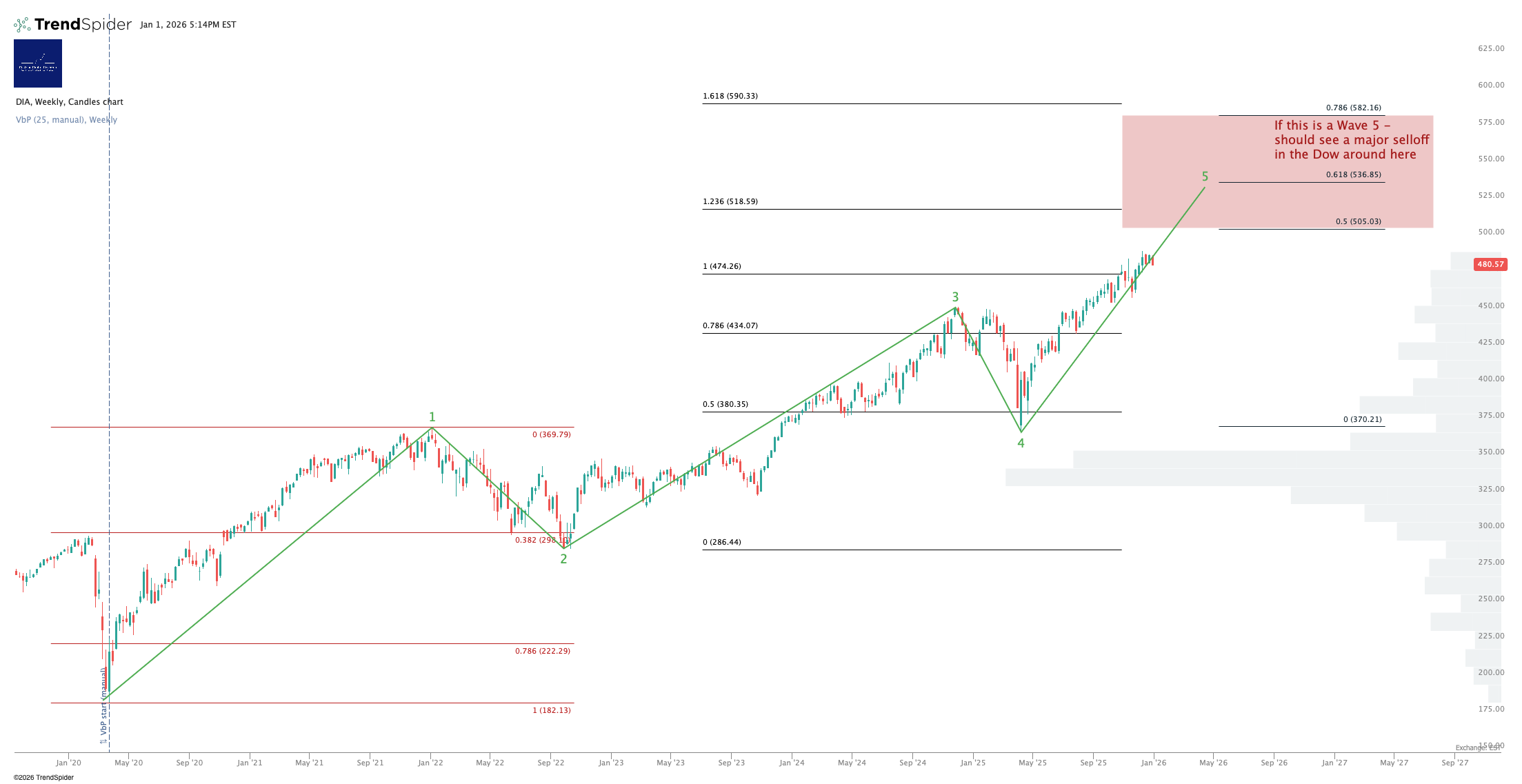 Here’s another roadmap. The Dow tends to move somewhat in concert with the S&P and the Nasdaq, and oddly it often leads the way. So I am using $DIA to see if we get a near term correction in the S&P and the Nasdaq - like this:
