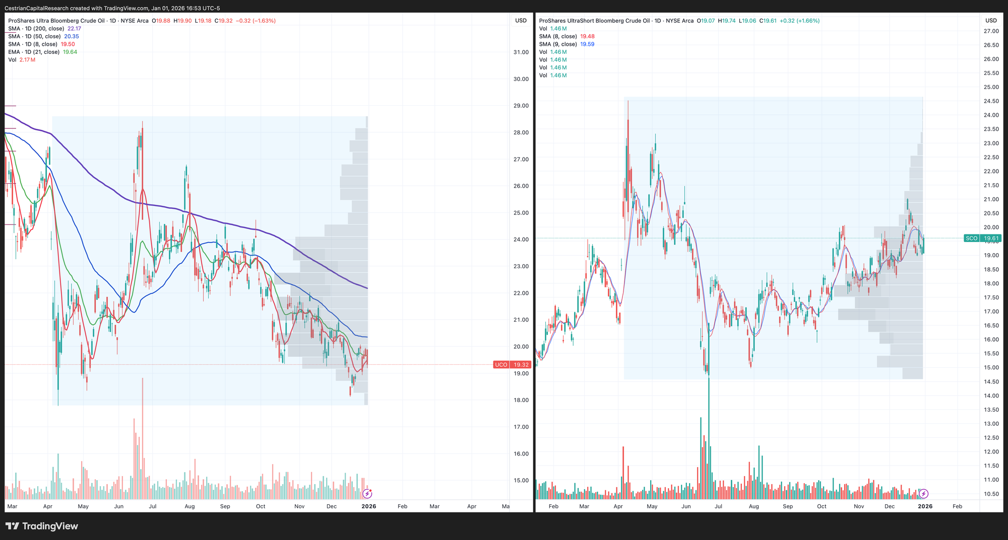 That futures chart above is the easiest way I know to trade the UCO / SCO pair.