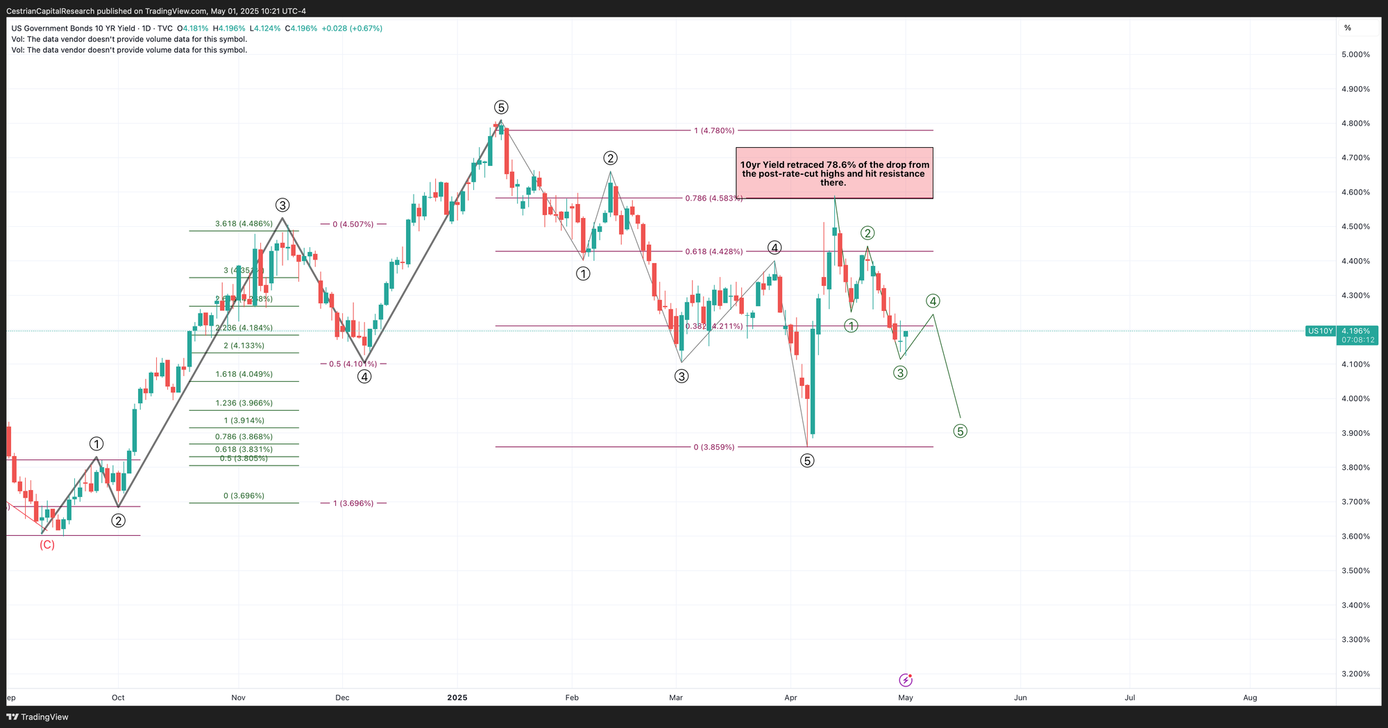 I think we may now see a short-term move back up in the yield prior to another drop - schematic below.
