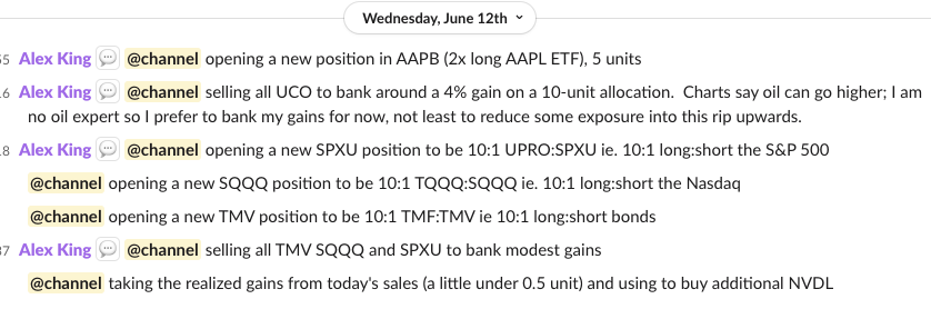 Here’s the log of disclosure alerts through the day yesterday as sent - before each trade was placed - to our Cestrian Inner Circle service members.