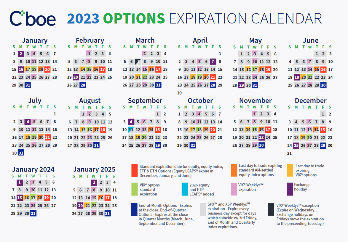 As we mentioned in yesterday's note, options expiry is upon us Friday, and it's a big one. Four times per year, around each quarter end, we hit triple witching (which used to be quadruple witching but there is less witchitiness since US single-stock futures ceased trading in 2020). On triple witching dates, index futures, index options, and single-stock options all hit expiry. Here's the CBOE's 2023 calendar (you can open a full-page version, here).