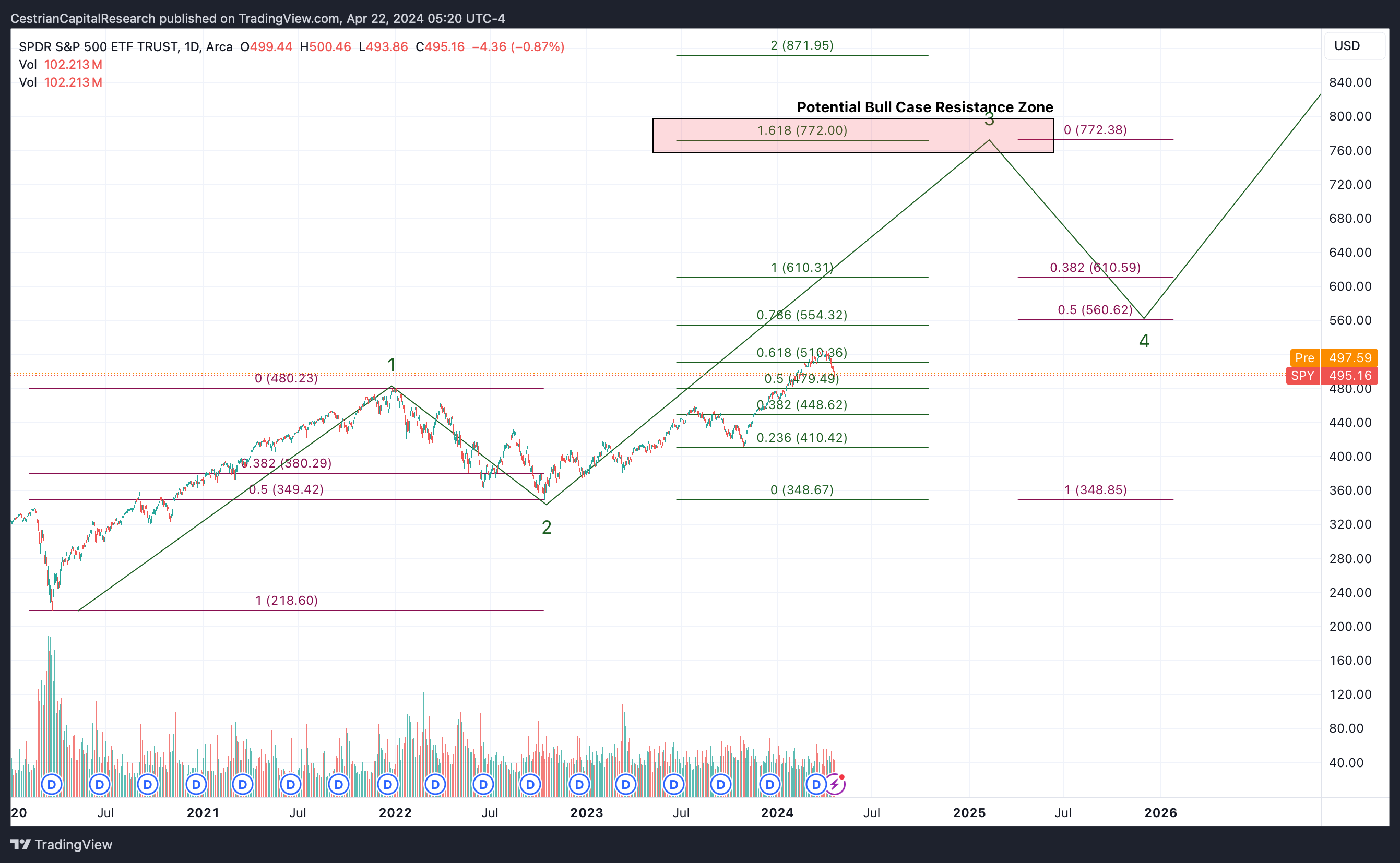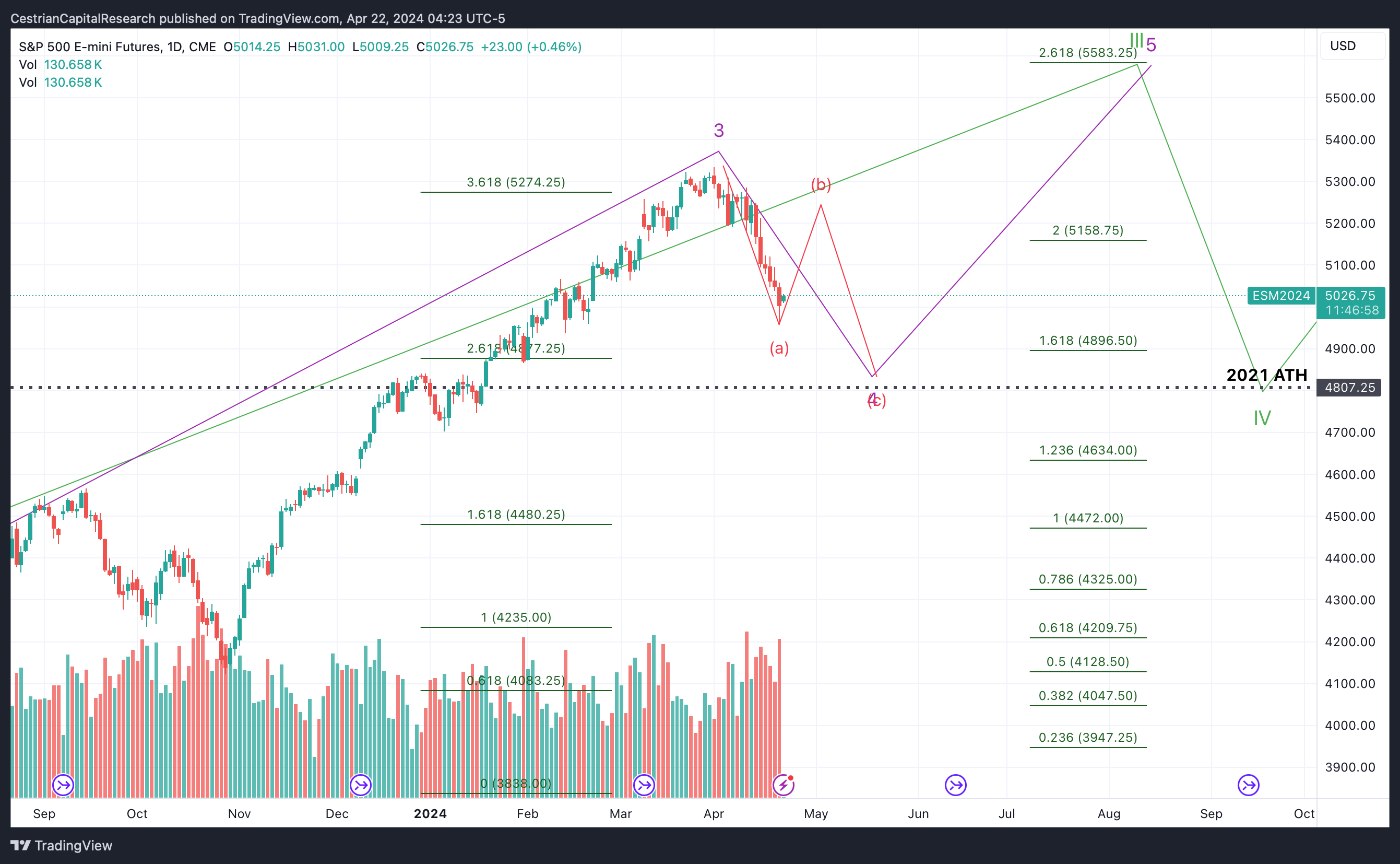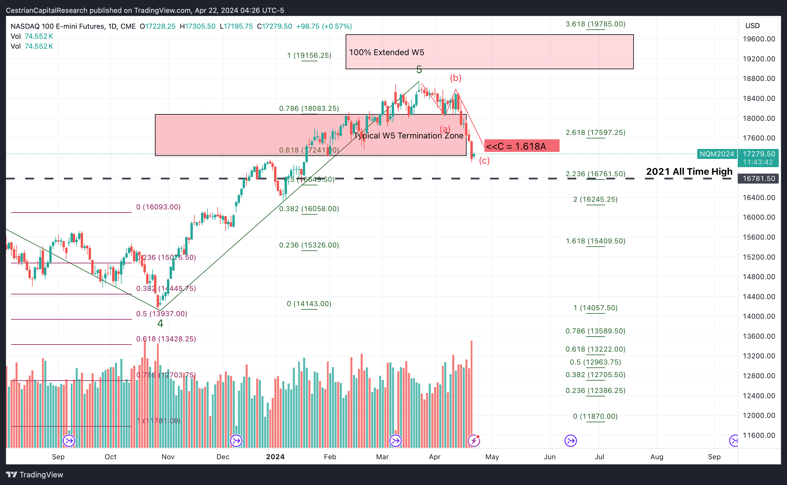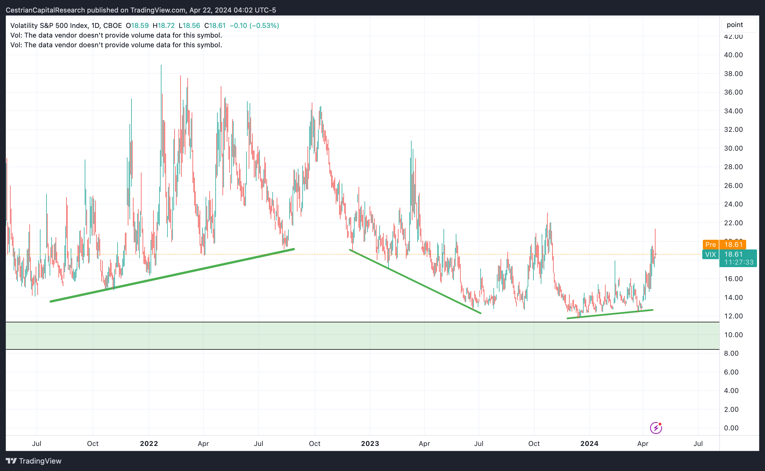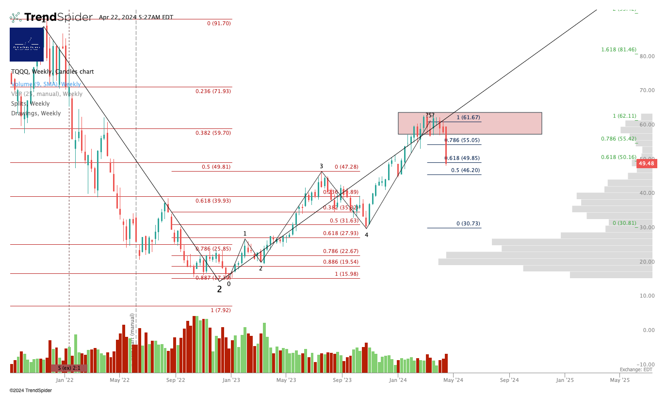 Alex King, Cestrian Capital Research, Inc - 22 April 2024. DISCLOSURE - Cestrian Capital Research, Inc staff personal accounts hold long positions in, inter alia, TQQQ, UPRO, SOXL, TNA, TMF, UDOW, UCO, SVXY plus 3USL and QQQ3 (EU UCITS equivalent to UPRO and TQQQ respectively).