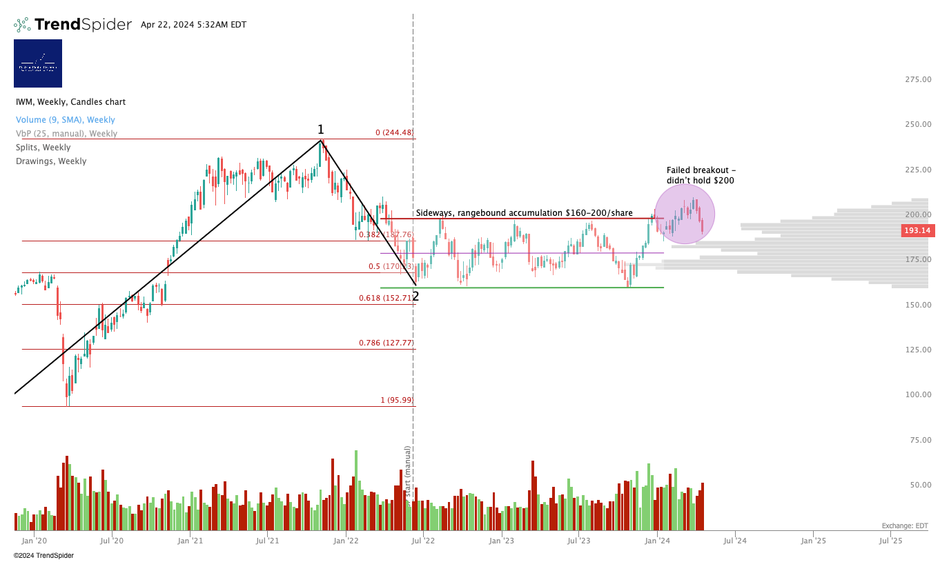 The Russell short term chart is very bullish, but recapturing $200 remains the key level for long-term up-moves.