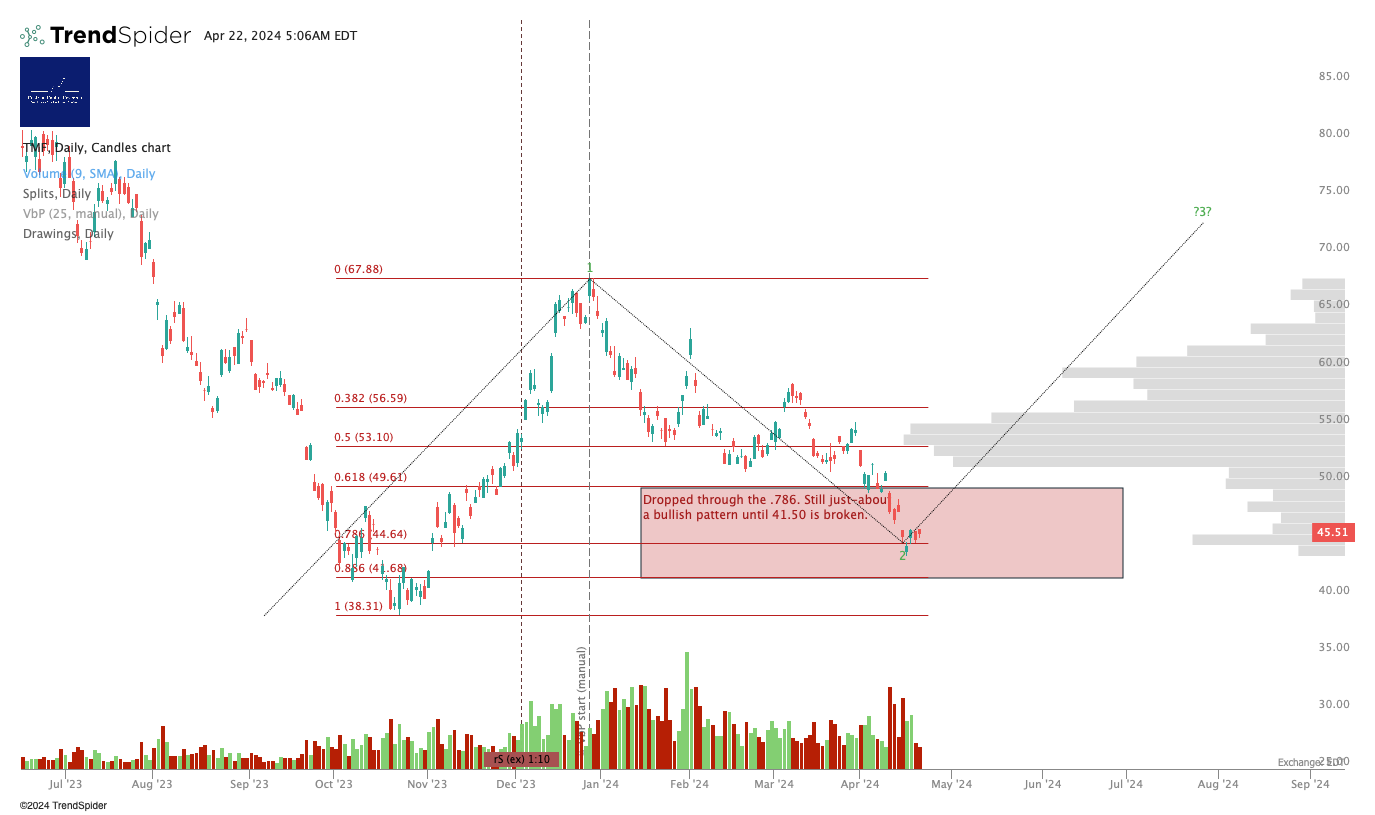 This has some work to do. Below $42, risk to the downside. Above $42 and $42 turned into support, looking to the upside. Now $33.
