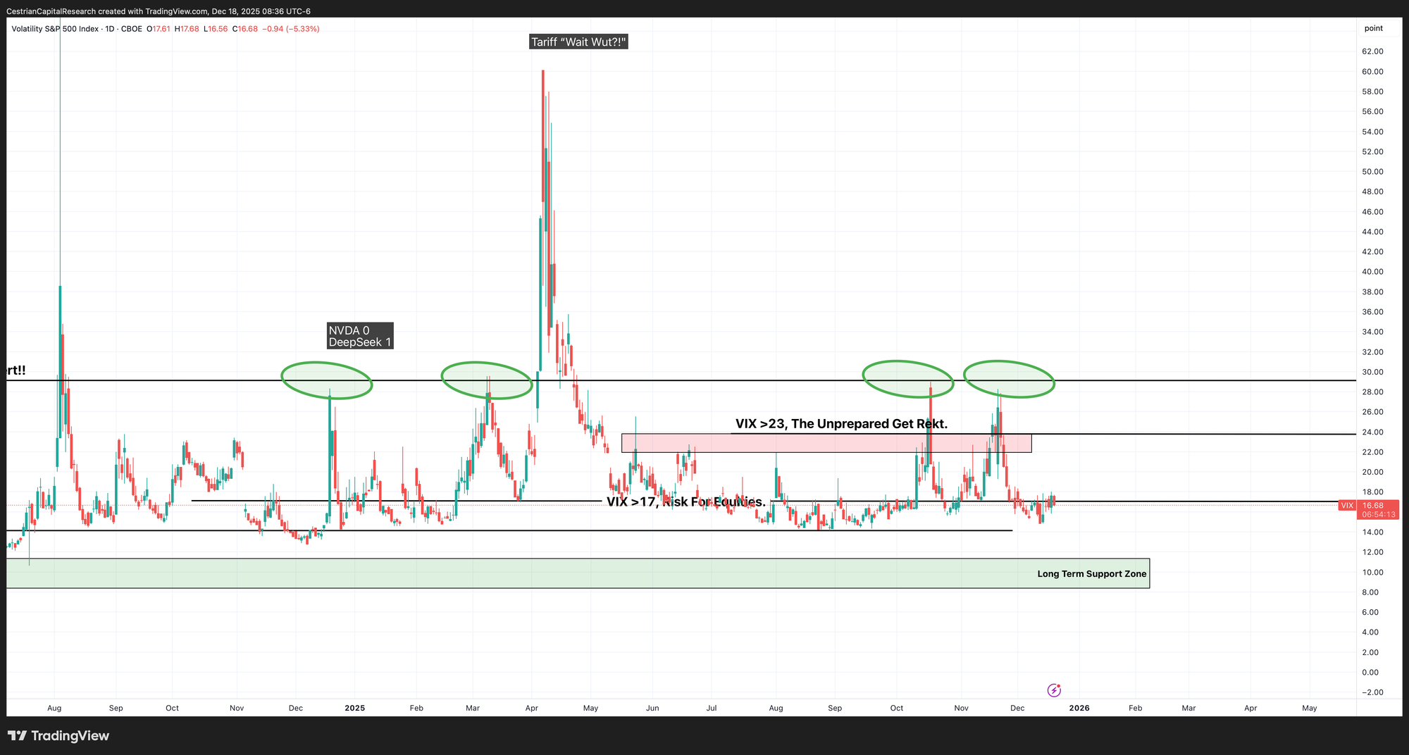 Back down below the 17 level. Bullish for equities.
