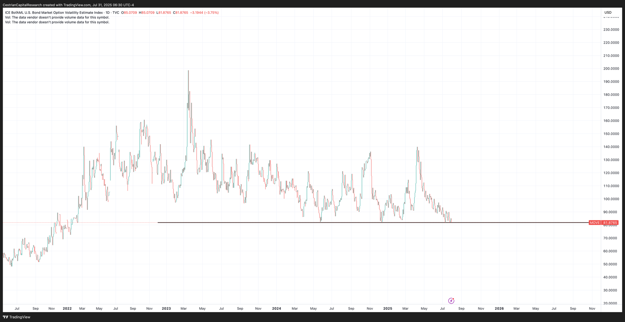 The MOVE is at the lows last seen in February and before that December.