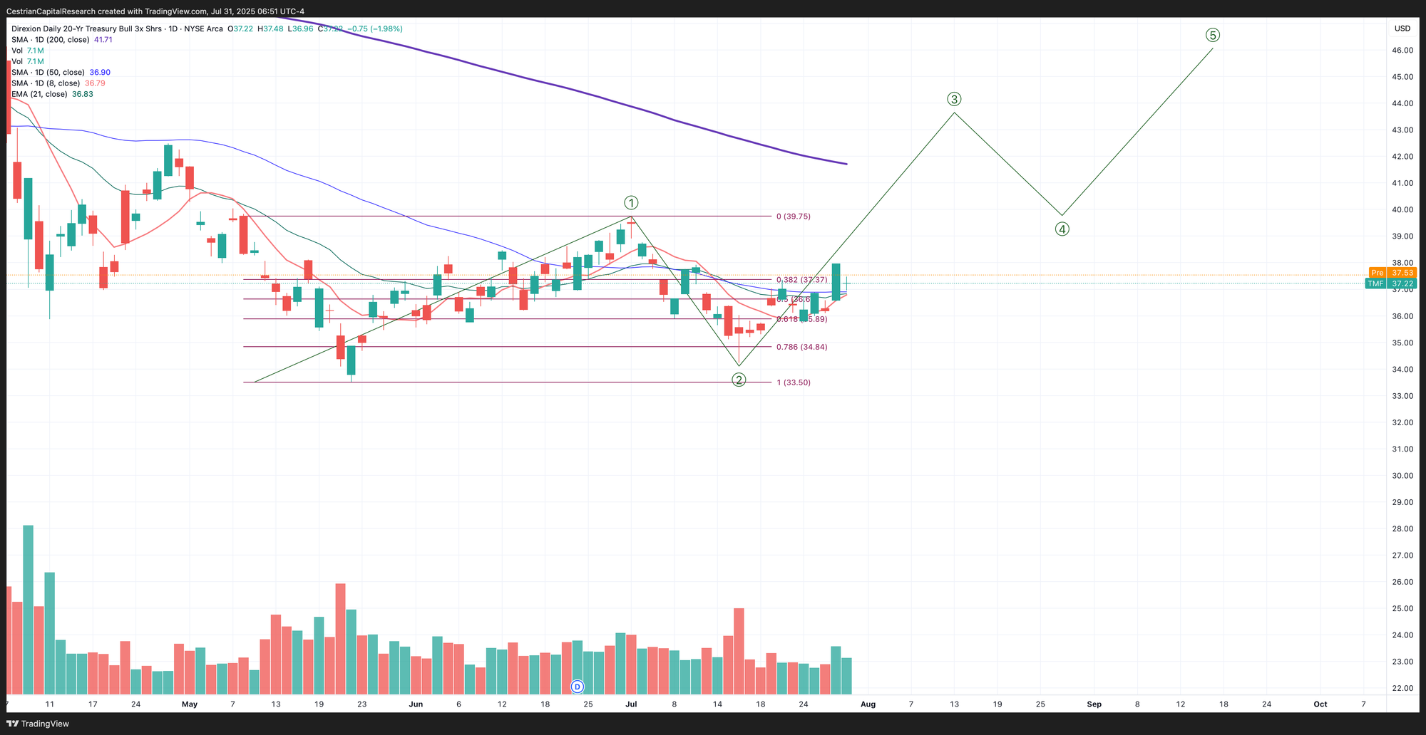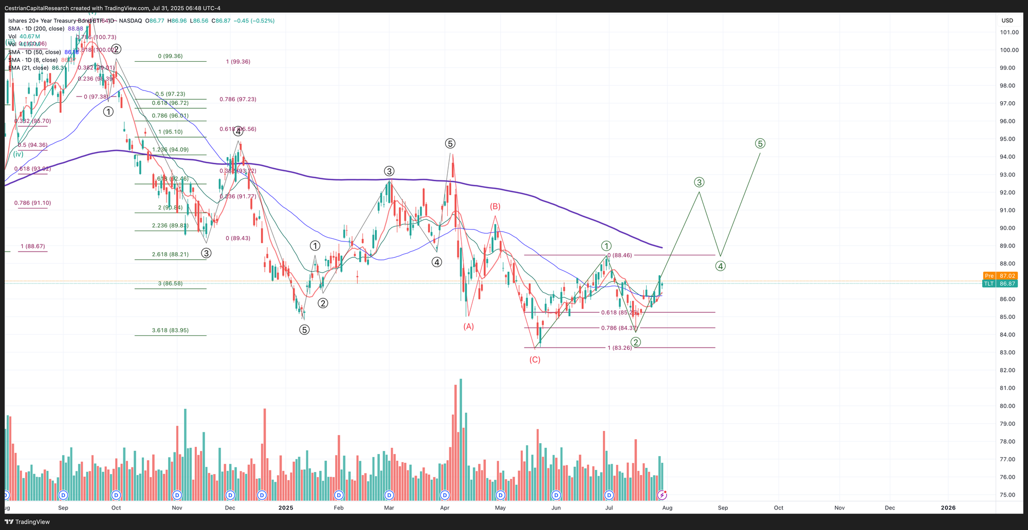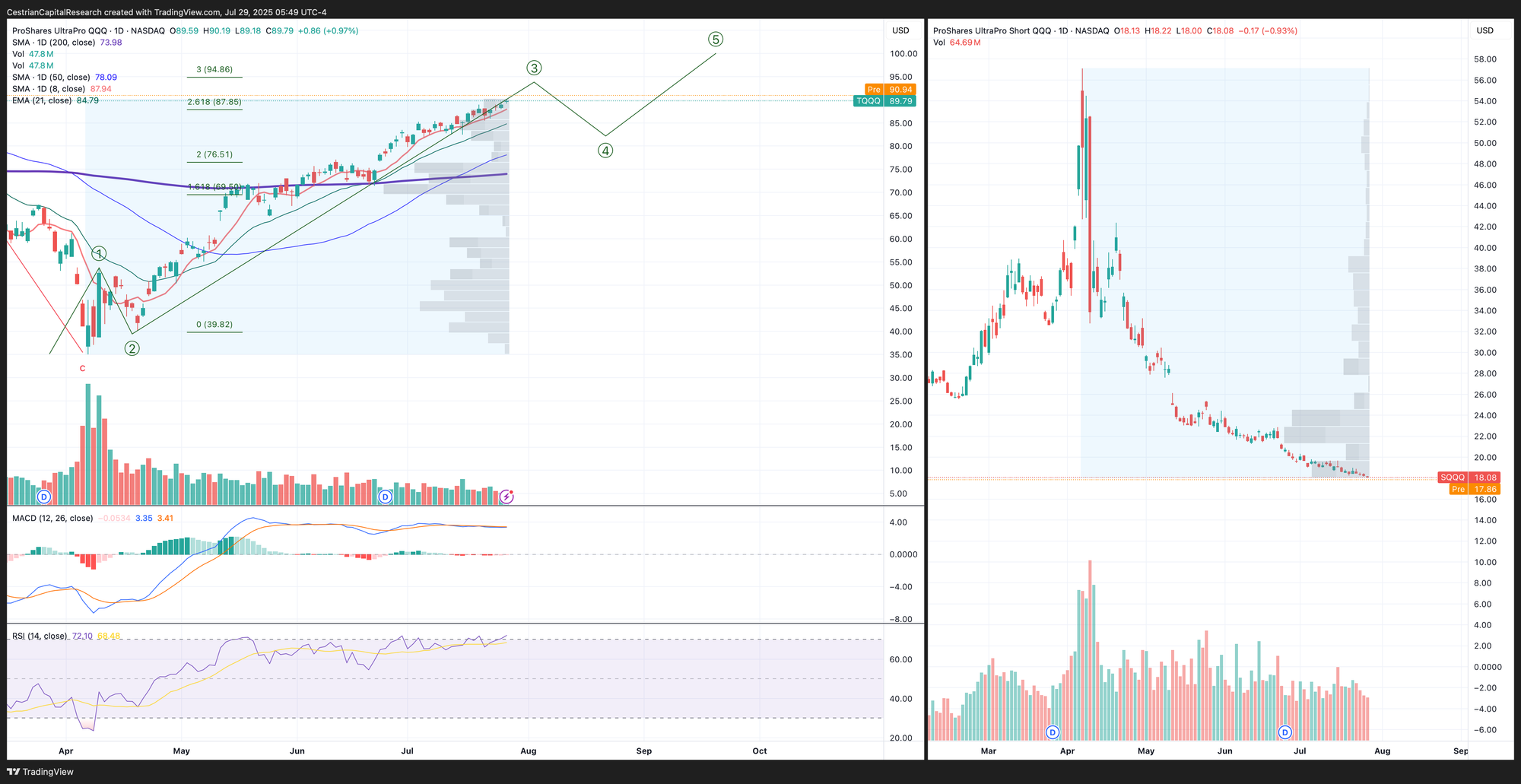 DISCLOSURE - Cestrian Capital Research, Inc staff personal accounts hold long positions in, inter alia, TQQQ, SQQQ, IUSA, SOXL, SOXS, TLT, TMF, DTLA, SDOW, ETHE; also long SOXS calls and September TQQQ, QQQ and SPY puts.