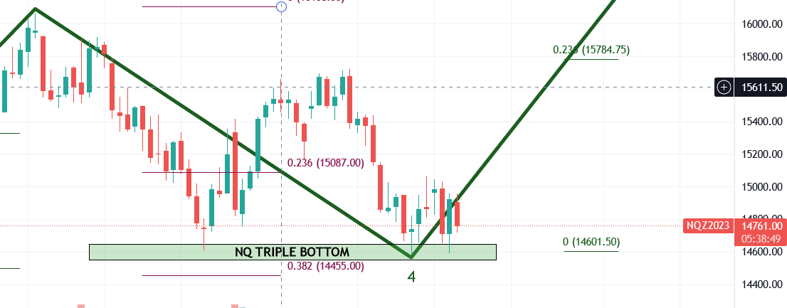 For as long as the NQ holds over that level, we're looking up. Breaks that level, we have some more weakness to come in our view.