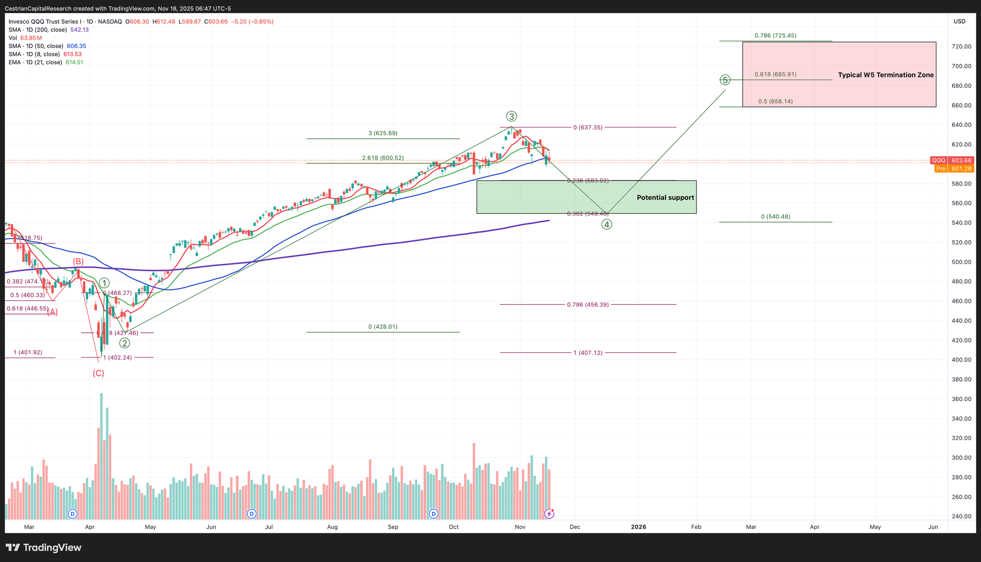 Lost the 50-day at the close yesterday; below it in premarket still. In the event of more downside I would be very suprised if the 200-day at $613 gave way.