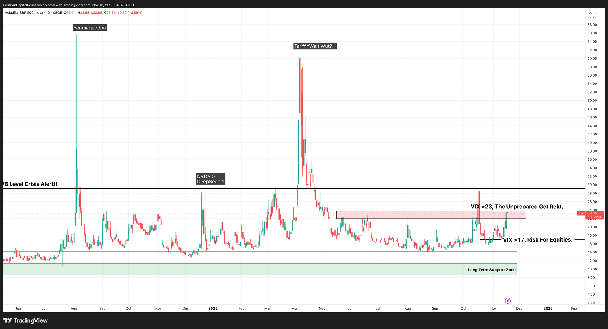At Vix 23 we can now start to think about the possibility of a vol crush. The Vix can go much higher but we are now at least in “spike” territory.