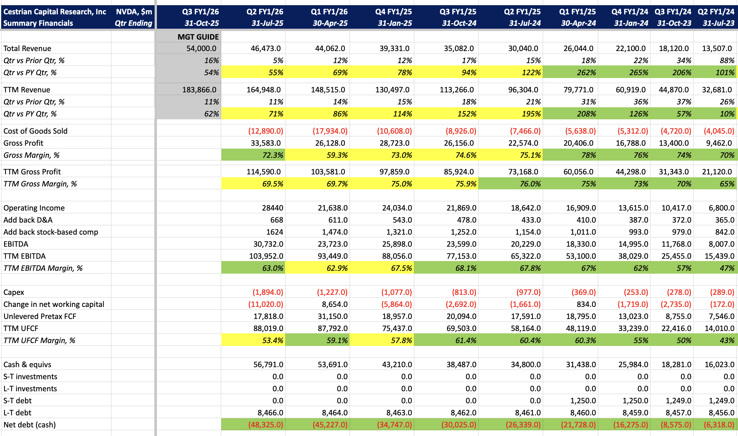 What kind of an alarm - a “sell everything and run for the hills” alarm? No. Not for me. It’s an important marker that this particular phase of the AI buildout is reaching a peak. AI economics do not work at the moment, absent a constant flow of exogenous equity funding. Something in the technology - probably GPU design itself - needs to change in order to deflate the economics. (If NVDA made half the cashflow margins it does (because of competition let’s say) then that alone would free up some $44bn of customer cash balances in the last twelve months).
