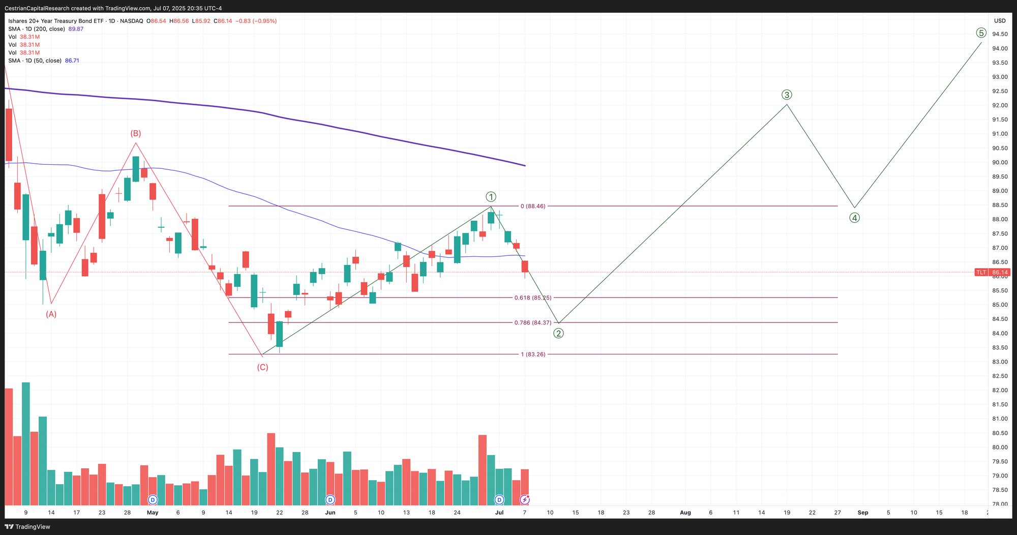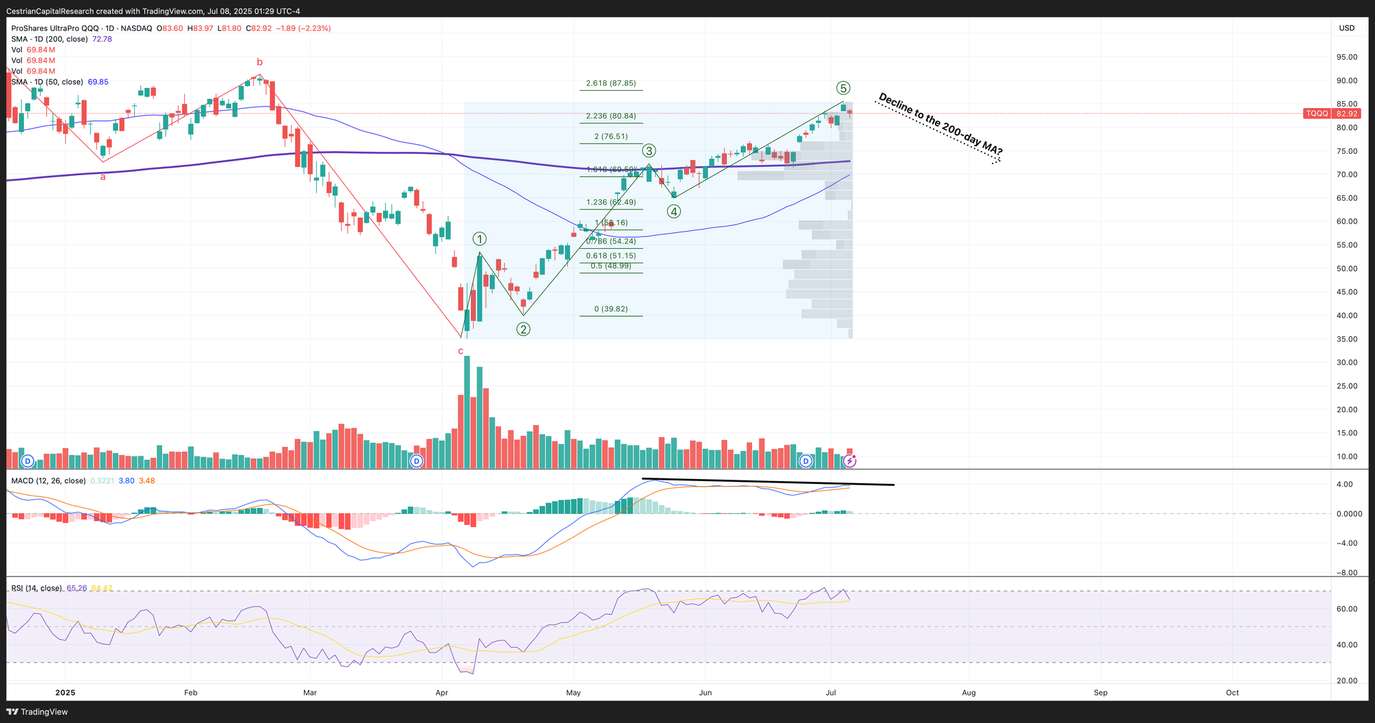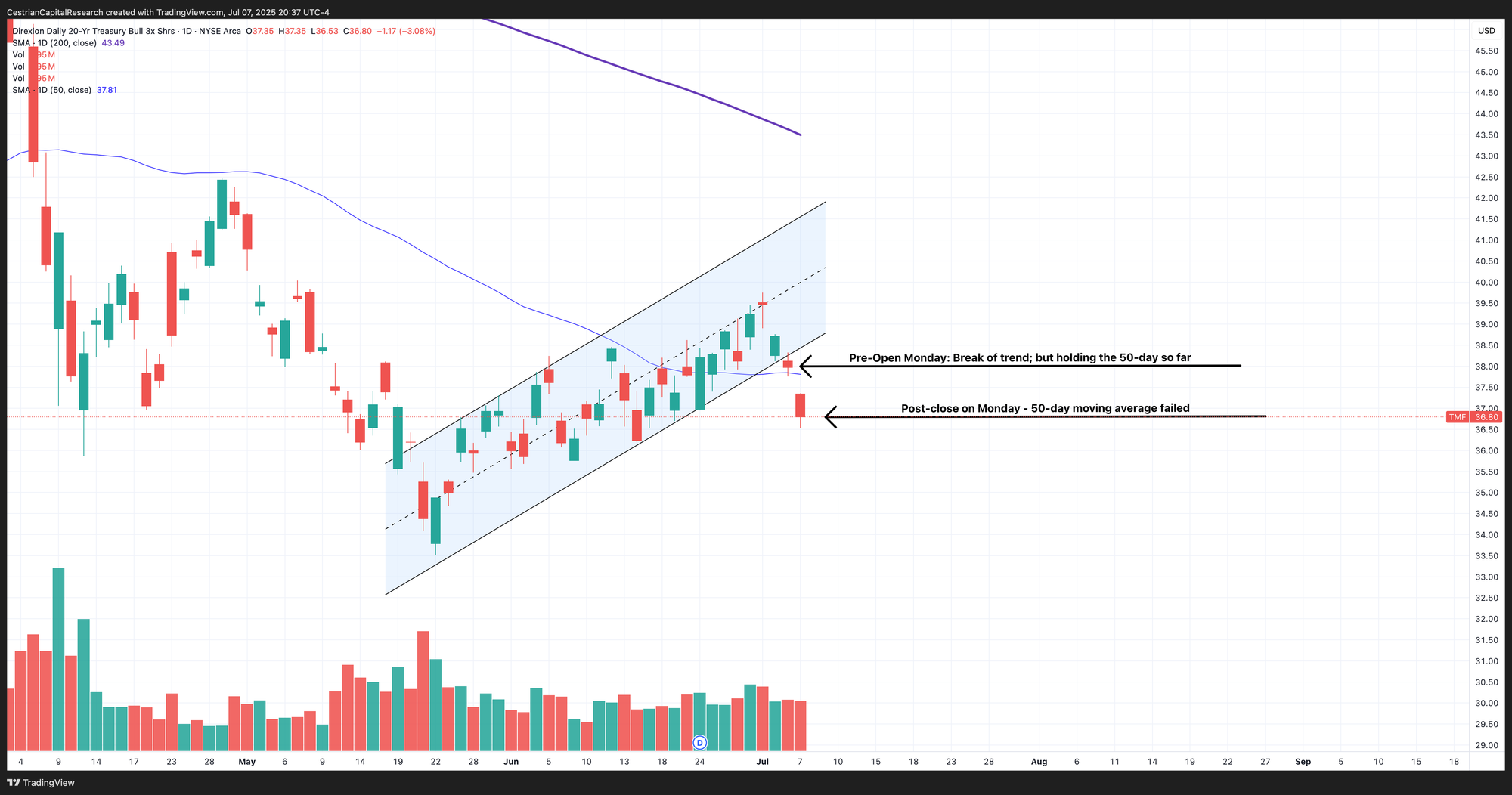 DISCLOSURE - Cestrian Capital Research, Inc staff personal accounts hold long positions in, inter alia, TQQQ, SQQQ, SOXL, SOXS, TLT, TMF, DTLA; also long August SOXS calls and September QQQ and SPY puts.