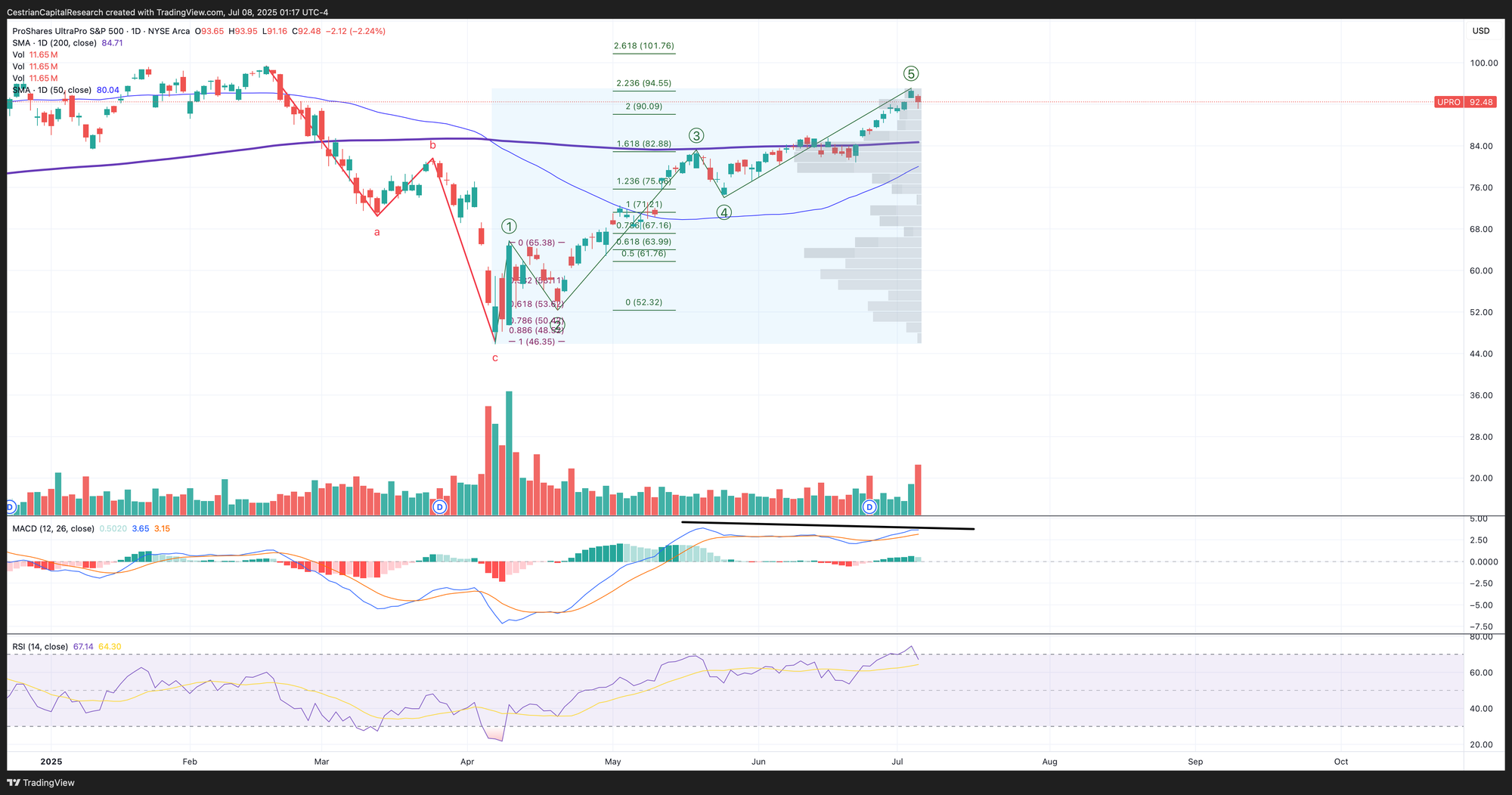 Support at the 50- or 200-day if we have more selling. Breaks the 200-day we can resurrect the saying “nothing good happens below the 200-day”. Remember if you want to hedge UPRO, consider SPXU.