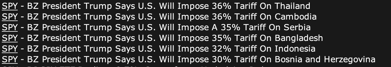 As the day progressed Monday, the promised letters were sent to third party countries with whom the US trades and with whom trade agreements have yet to be agreed. The headlines rolled in thus:
