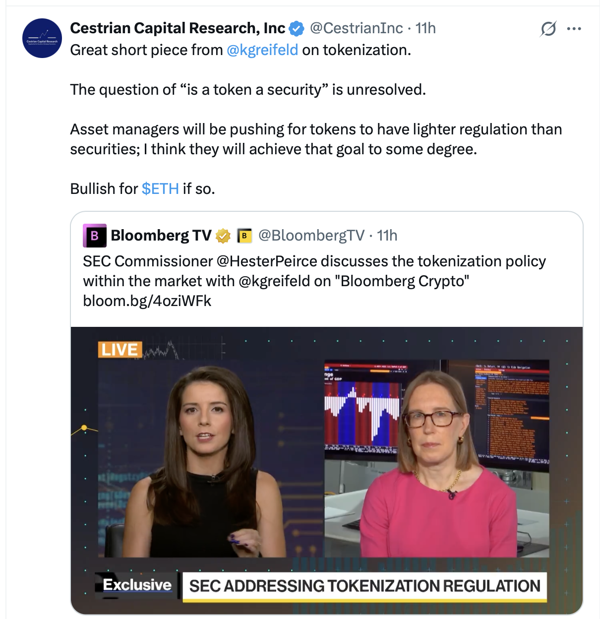 It’s about the creation of a parallel financial system, where the defining concept is the “token” not the “security”. This is going to happen, the train has left the station, there is money to be made, and there are fortunes and homes that will be lost. All of which is also true of the securities market. The two systems will co-exist for a time and may in the end merge.