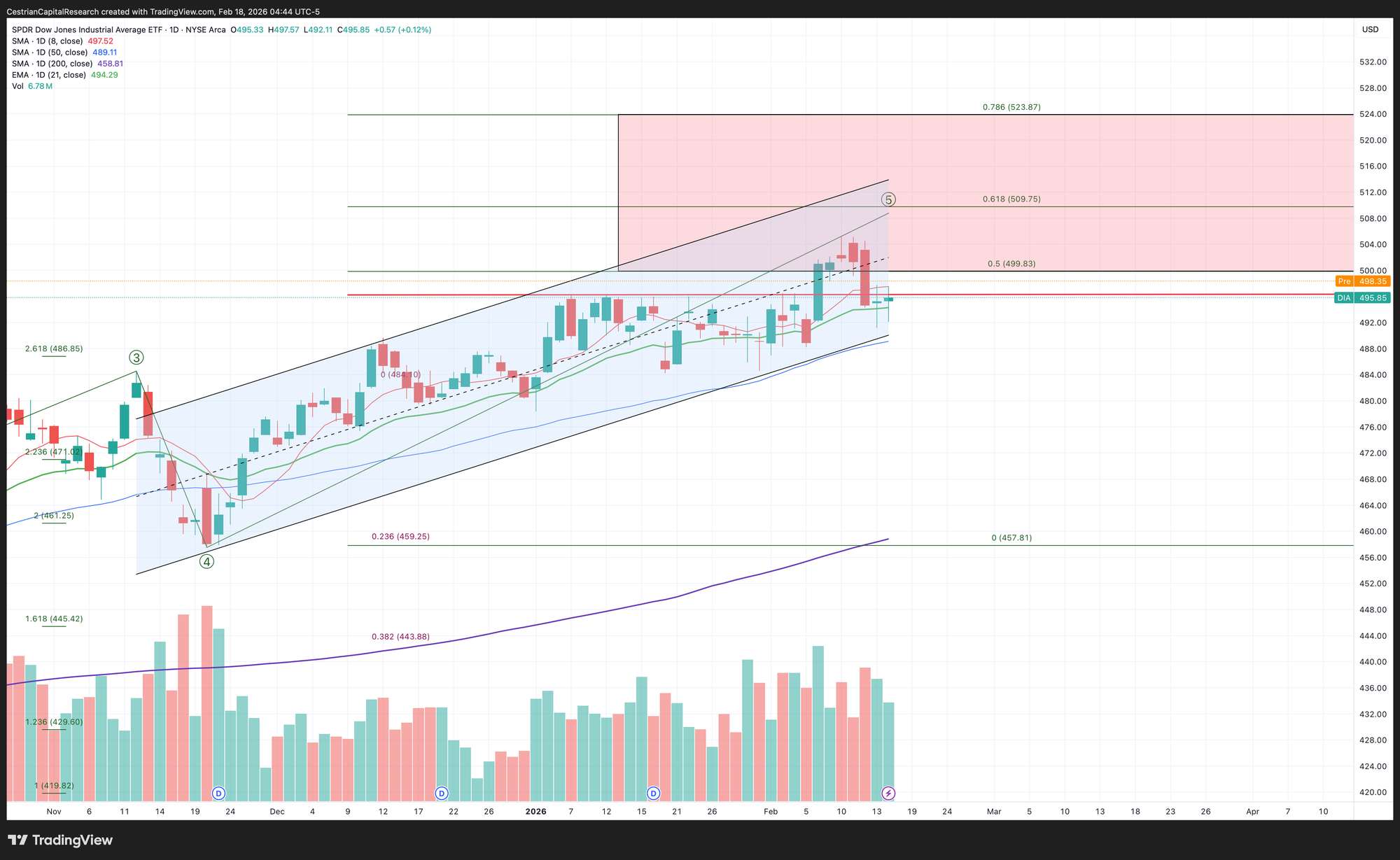 As you can see, very different price action in the Dow vs. the S&P or the Nasdaq of late. DIA is up and over its 8-day SMA in premarket trading by the way.